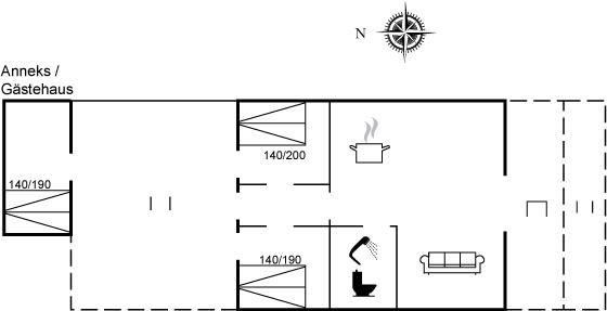 Et lille, men hyggeligt og godt indrettet sommerhus, som ligger tæt på svømmehallen og fiskesøen i Arrild Ferieby. Til huset hører et anneks, som er indrettet med 2 af de i alt 6 sovepladser.