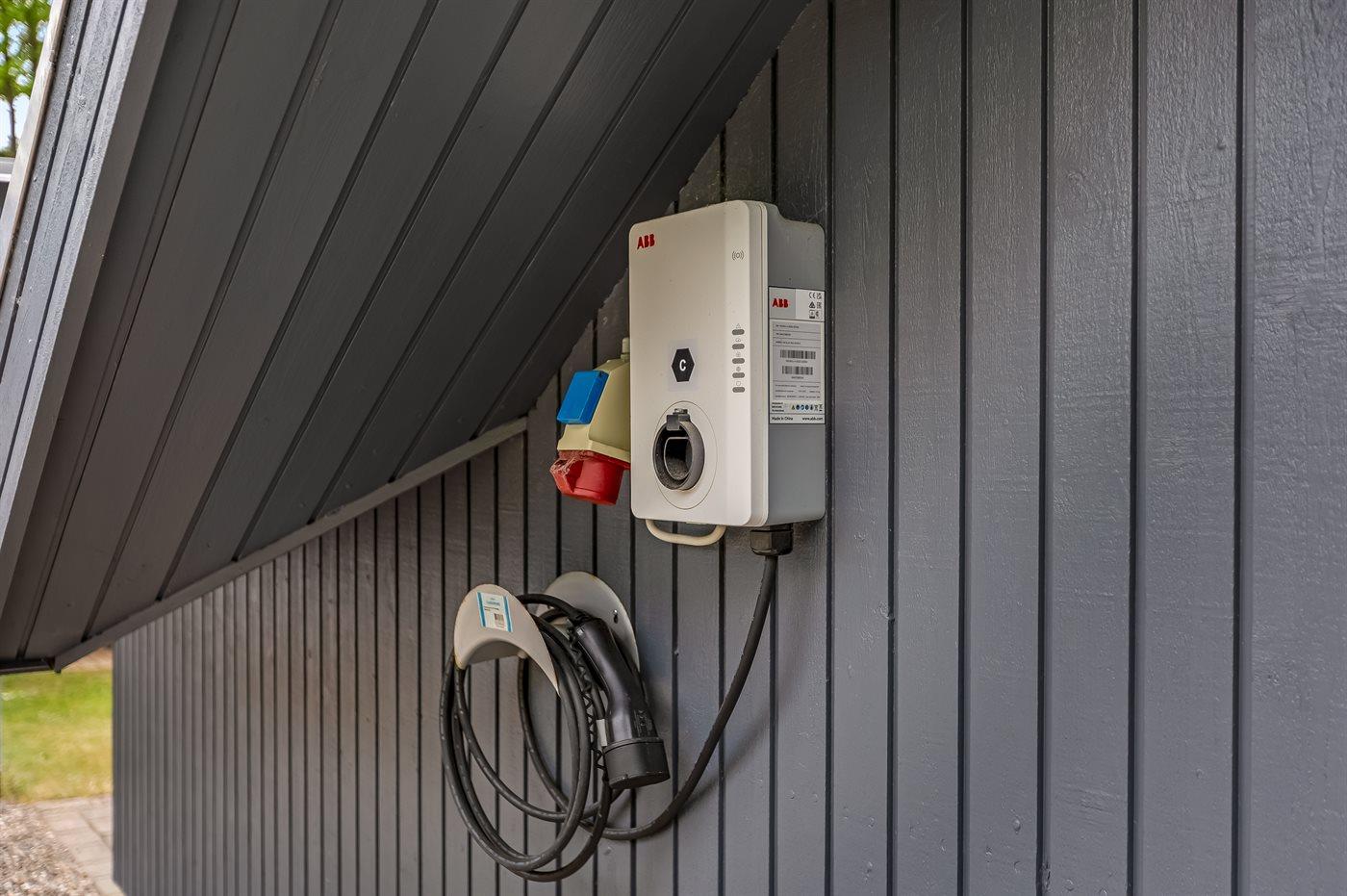 Ferieboligen er beliggende på en 871 m² stor naturgrund. Der er 31000 m til havet. Der er 18000 m til Vadehavet. Der er en sø i en afstand af 600 m. Nærmeste forretning er beliggende i en afstand af 300 m. Der er en golfbane i en afstand af 2800 m. Til ferieboligen hører 60 m² terrasseareal. Desuden er der 9 m² overdækket terrasse. Gynge. Sandkasse. Der ligger en legeplads i en afstand af 400 m. Grill til rådighed. Der er installeret stik til opladning af elbil. Type 2 stik. Med 11 kW ladeeffekt. Parkering ved ferieboligen.