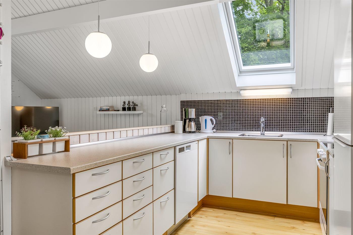 Køkkenet er udstyret med 1 køleskab. Der er 4 keramiske kogeplader, varmluftovn, mikrobølgeovn samt opvaskemaskine.