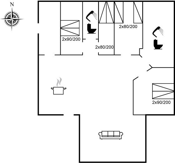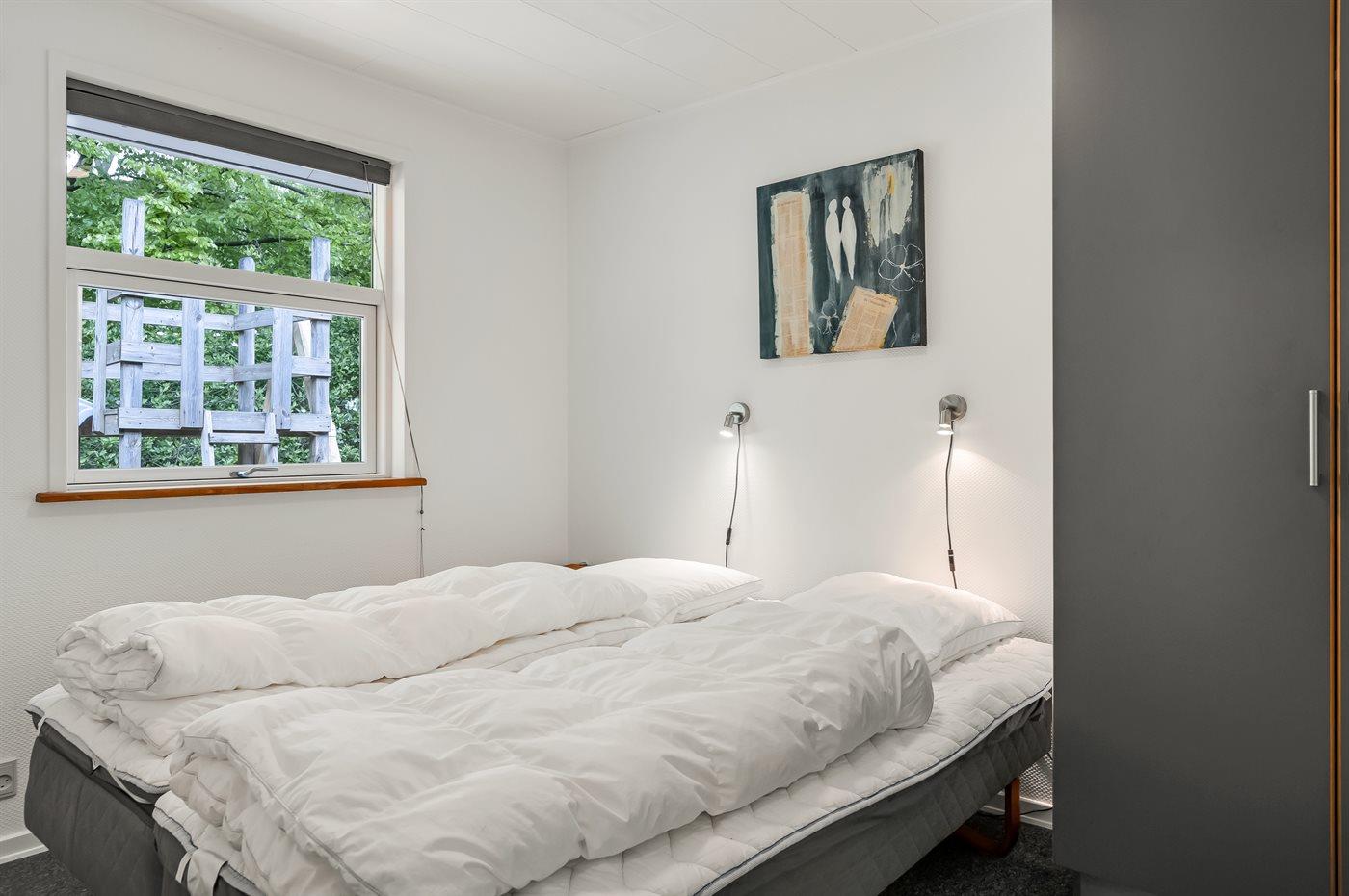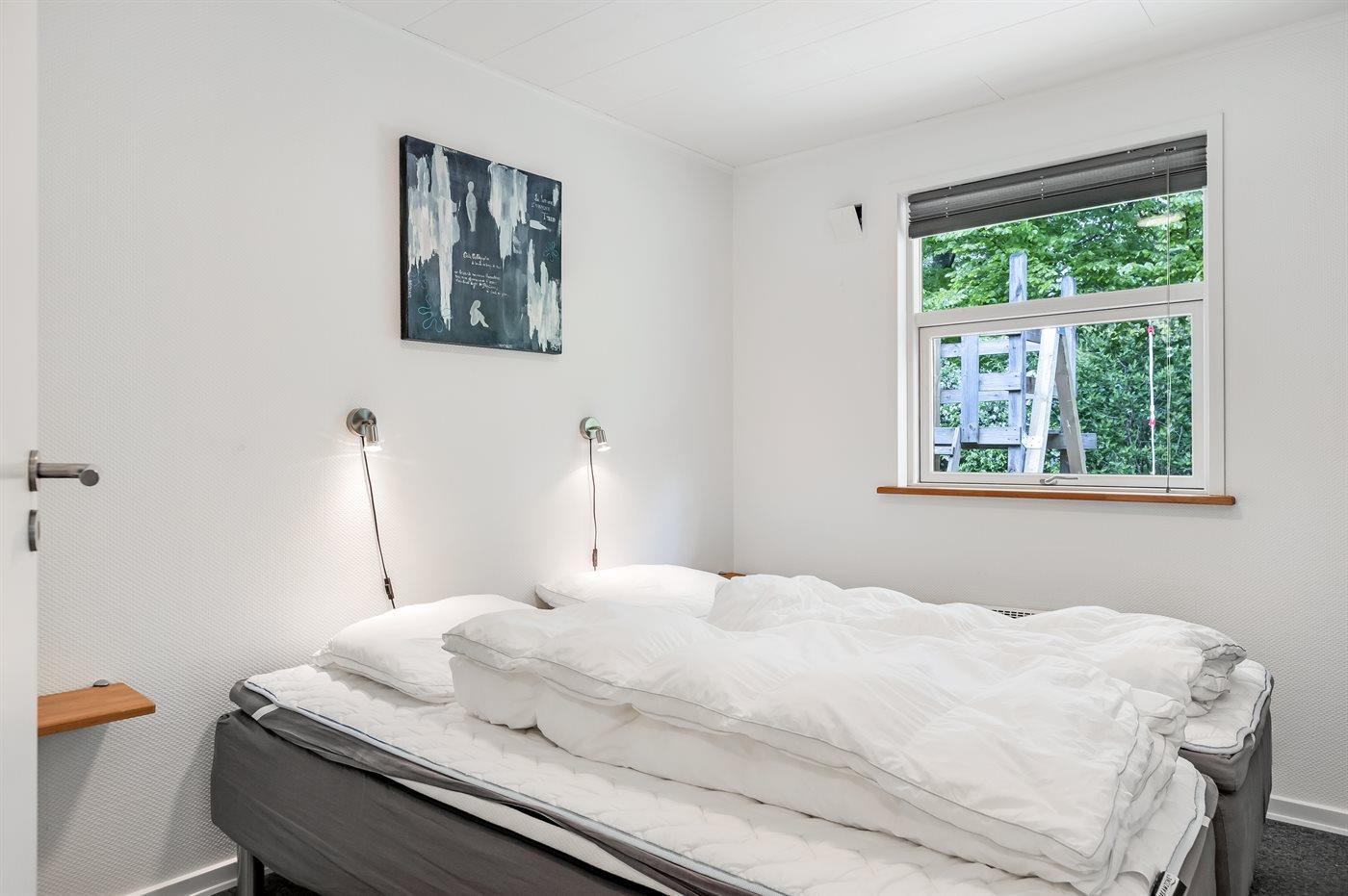 Der er i alt 4 soveværelser. Sovepladserne fordeler sig på: 6 sovepladser i dobbeltsenge. 2 sovepladser i enkeltsenge. Derudover er der 1 stk. barneseng.