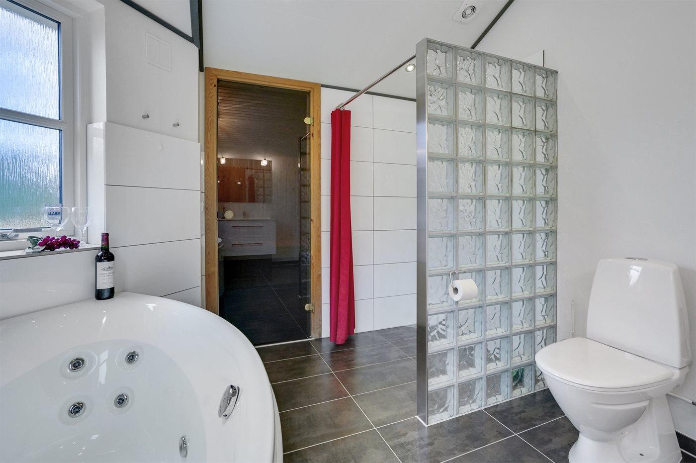 Der er 2 badeværelser med bruseniche og 2 toiletter. Der er gulvvarme på 2 badeværelser. I saunaen er der mulighed for afslapning.