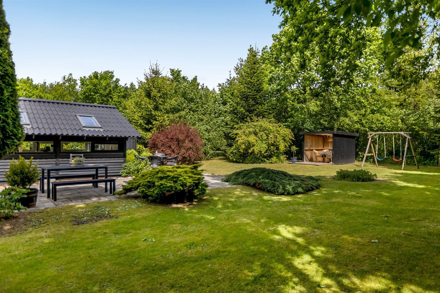 Ferieboligen er beliggende på en 875 m² stor naturgrund. Grunden er indhegnet. Der er 30000 m til havet. Der er 20000 m til Vadehavet. Der er en sø i en afstand af 900 m. Nærmeste forretning er beliggende i en afstand af 1000 m. Til ferieboligen hører åbent terrasseareal. Desuden er der overdækket terrasse. Der er redskabsrum. Gynge. Der ligger en legeplads i en afstand af 900 m. Grill til rådighed. Der er installeret stik til opladning af elbil. Type 2 stik. Parkering ved ferieboligen.