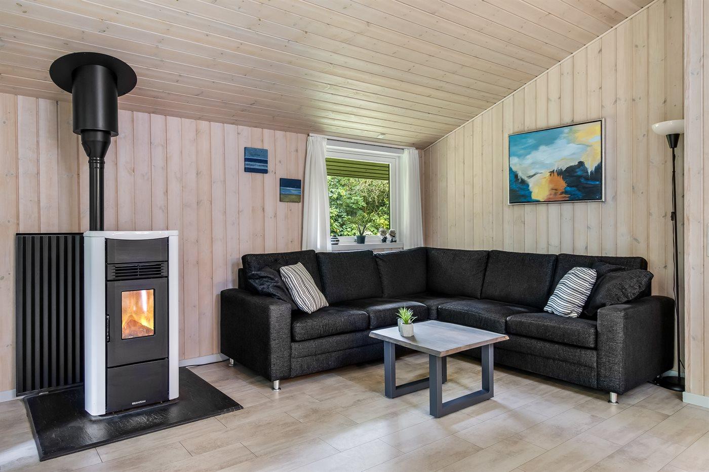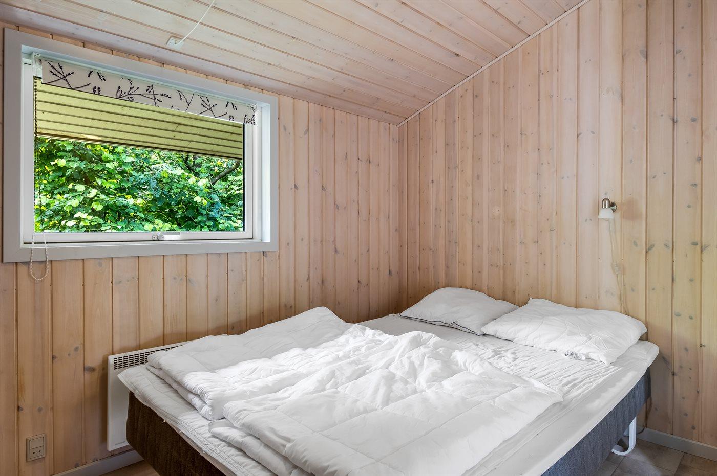 Inde i huset venter to nye kvalitetssenge, der sikrer dig en god nattesøvn og optimal komfort. De smukke sprossevinduer giver masser af lys og tilfører huset charme og karakter. Stuen byder på et stort panoramavindue, hvor du kan lade blikket glide ud på trætoppene og mærke skoven helt tæt på.