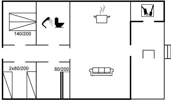 Der er i alt 3 soveværelser. Sovepladserne fordeler sig på: 2 sovepladser i dobbeltseng. 2 sovepladser i enkeltsenge. 2 sovepladser i køjeseng. Derudover er der 1 stk. barneseng.