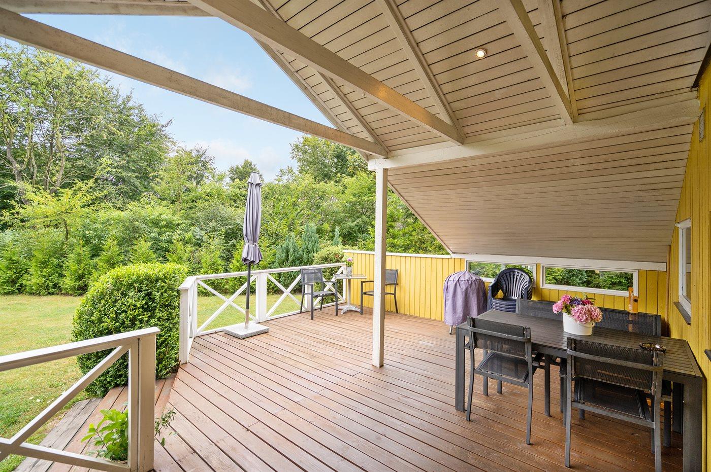 Hyggeligt sommerhus med stor terrasse og rolig beliggenhed nær natur i Arrild, perfekt til familieferie.