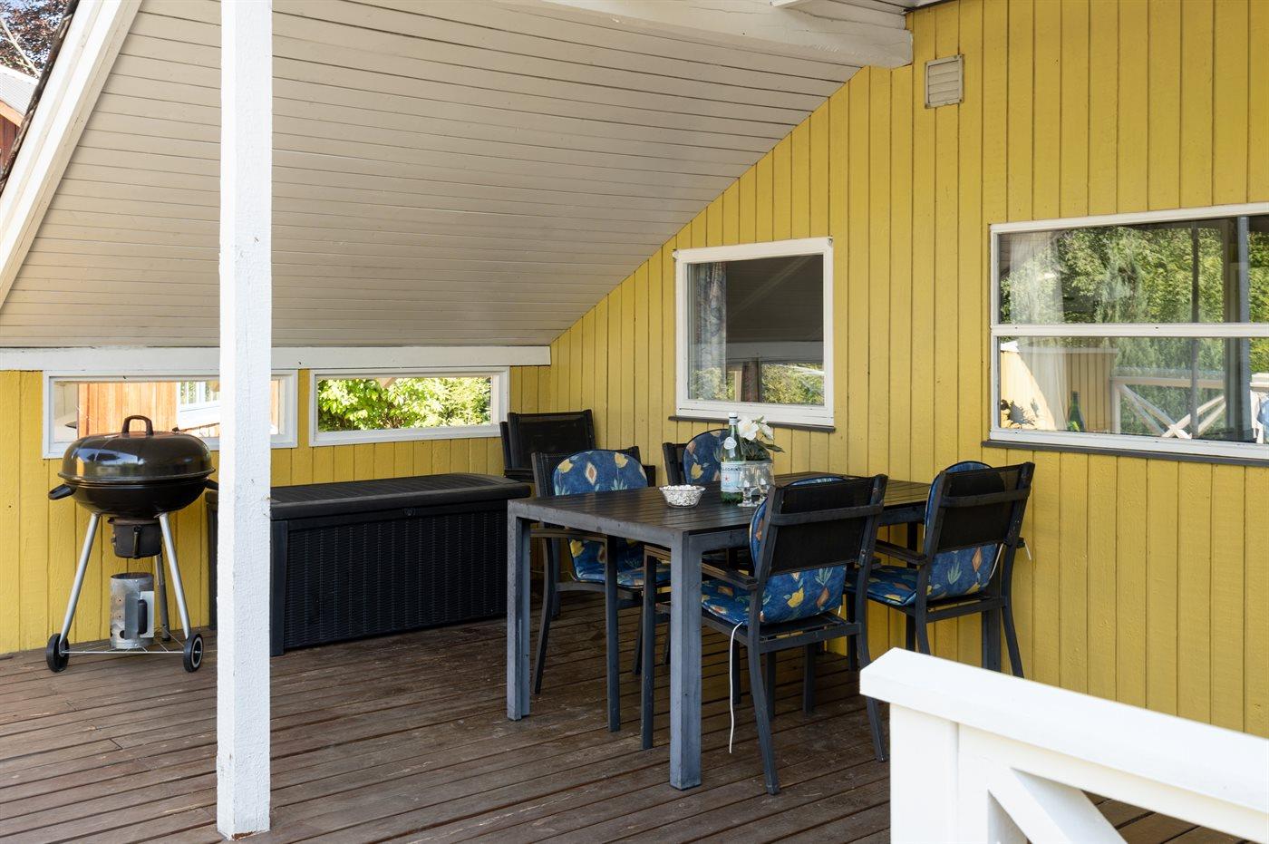 Et dejligt, lille sommerhus med stor terrasse beliggende i et roligt område.
