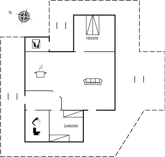 Der er i alt 2 soveværelser. Sovepladserne fordeler sig på: 2 sovepladser i dobbeltseng. 2 sovepladser i enkeltsenge. Derudover er der 1 stk. barneseng.