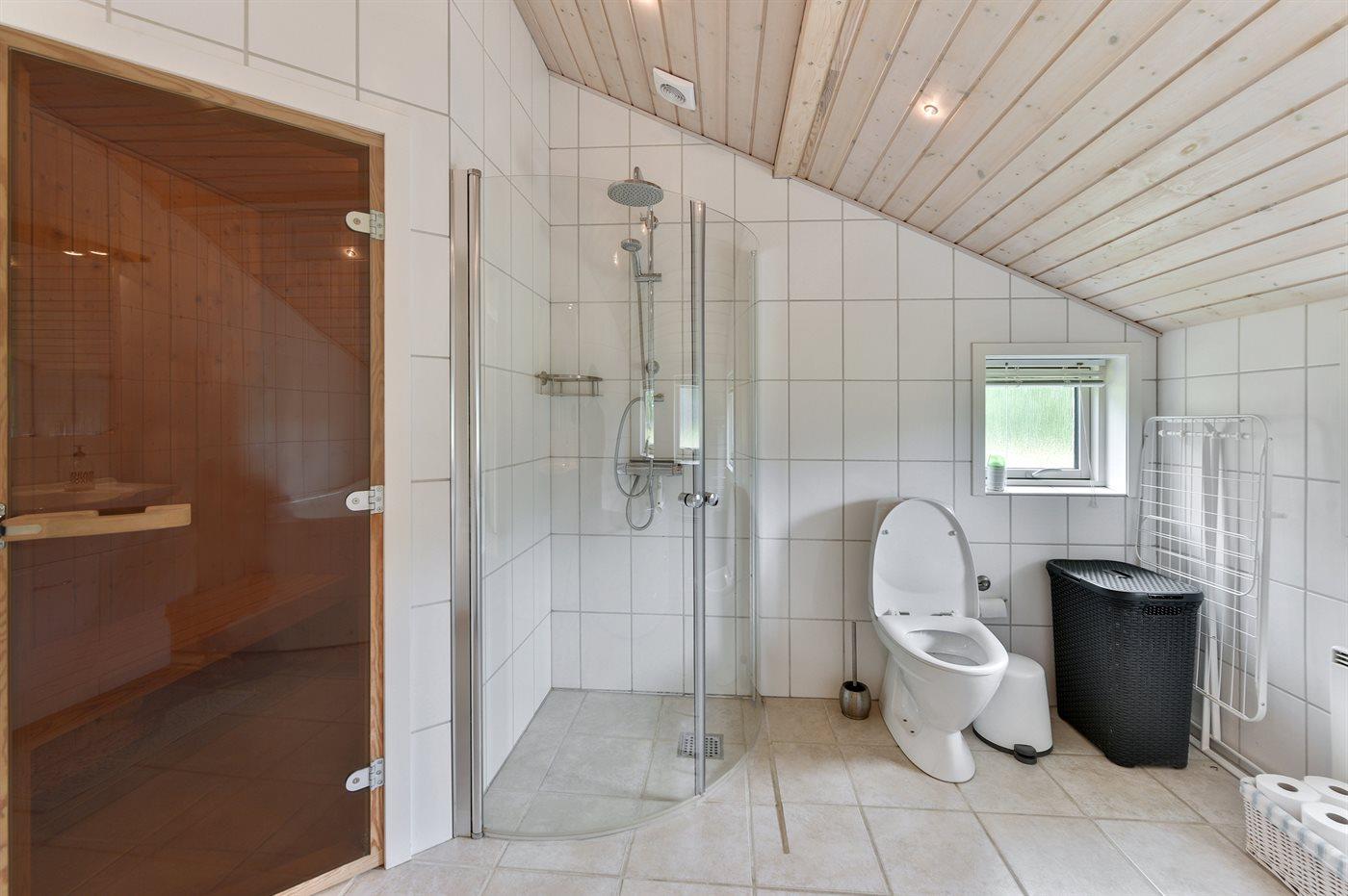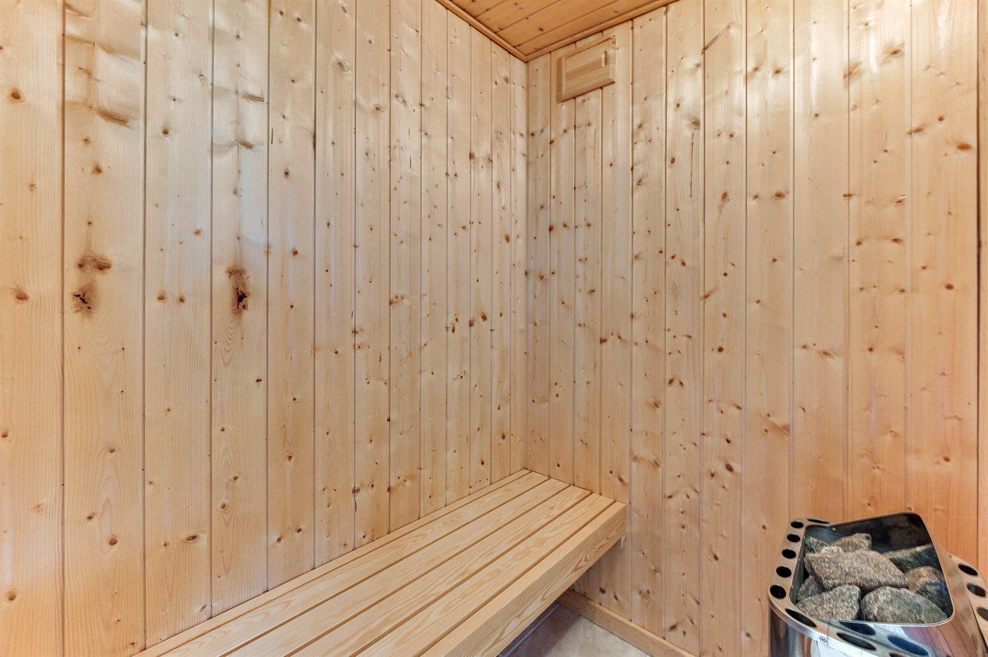Der er 1 badeværelse med bruseniche og 1 toilet.. Der er gulvvarme på 1 badeværelse. I saunaen er der mulighed for afslapning.