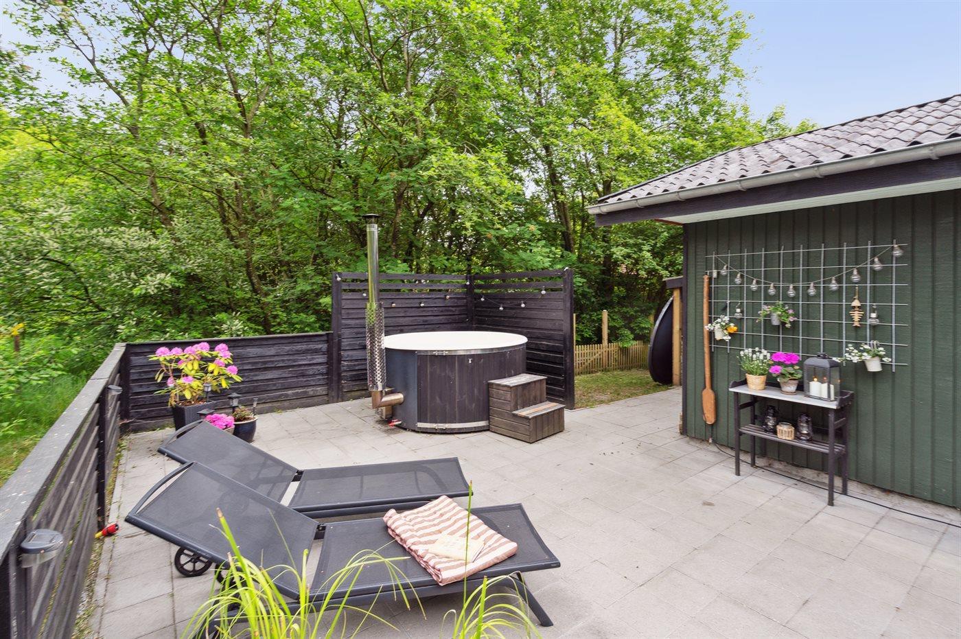 Hyggeligt sommerhus med terrasse og spa