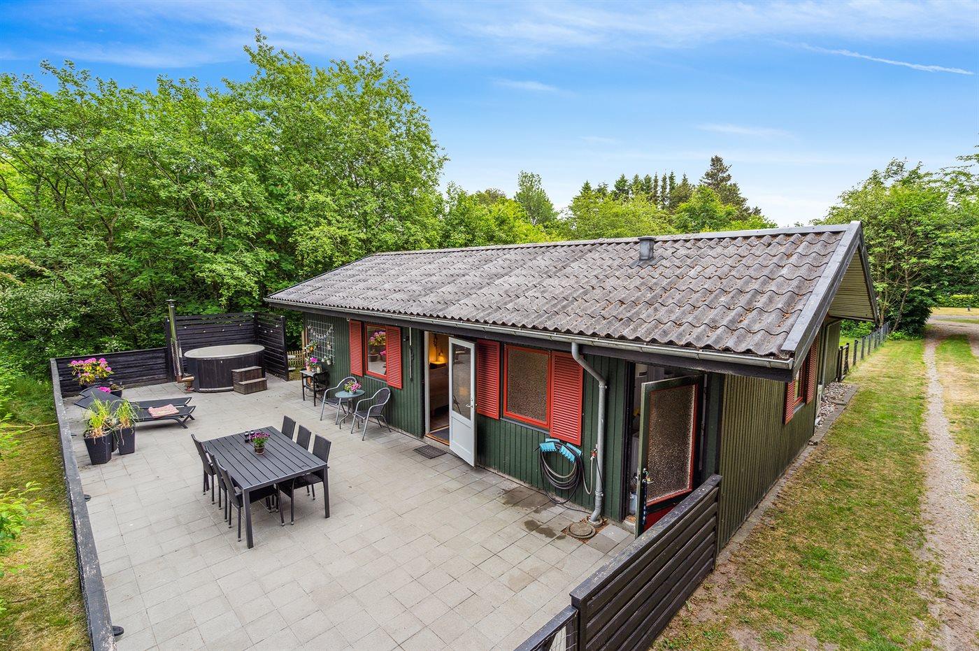 Hyggeligt sommerhus i Arrild med ugeneret terrasse og udendørs vildmarkskar til afslapning.