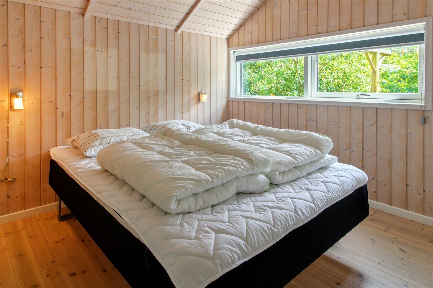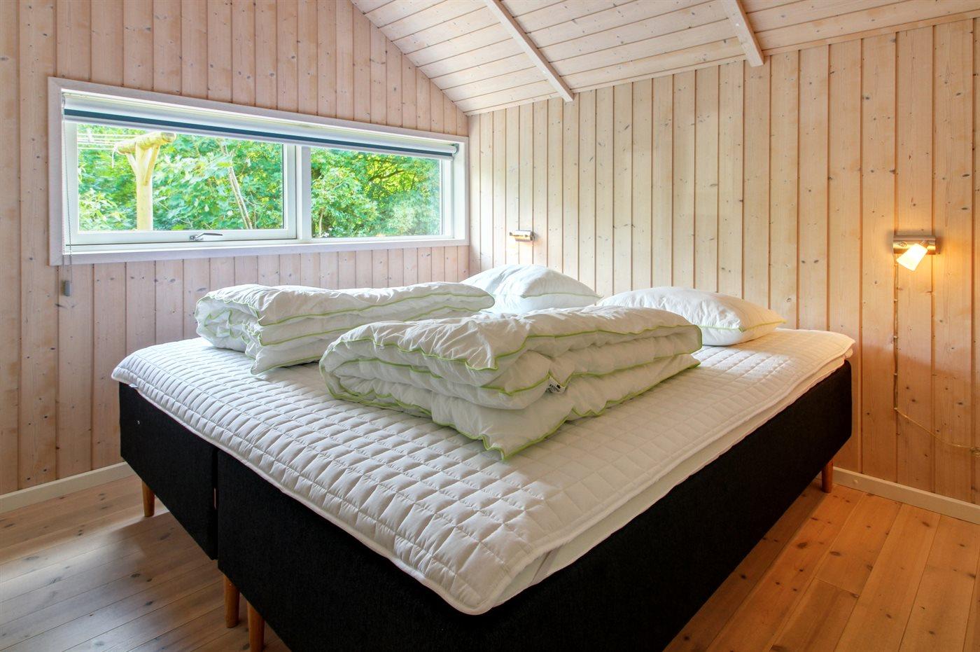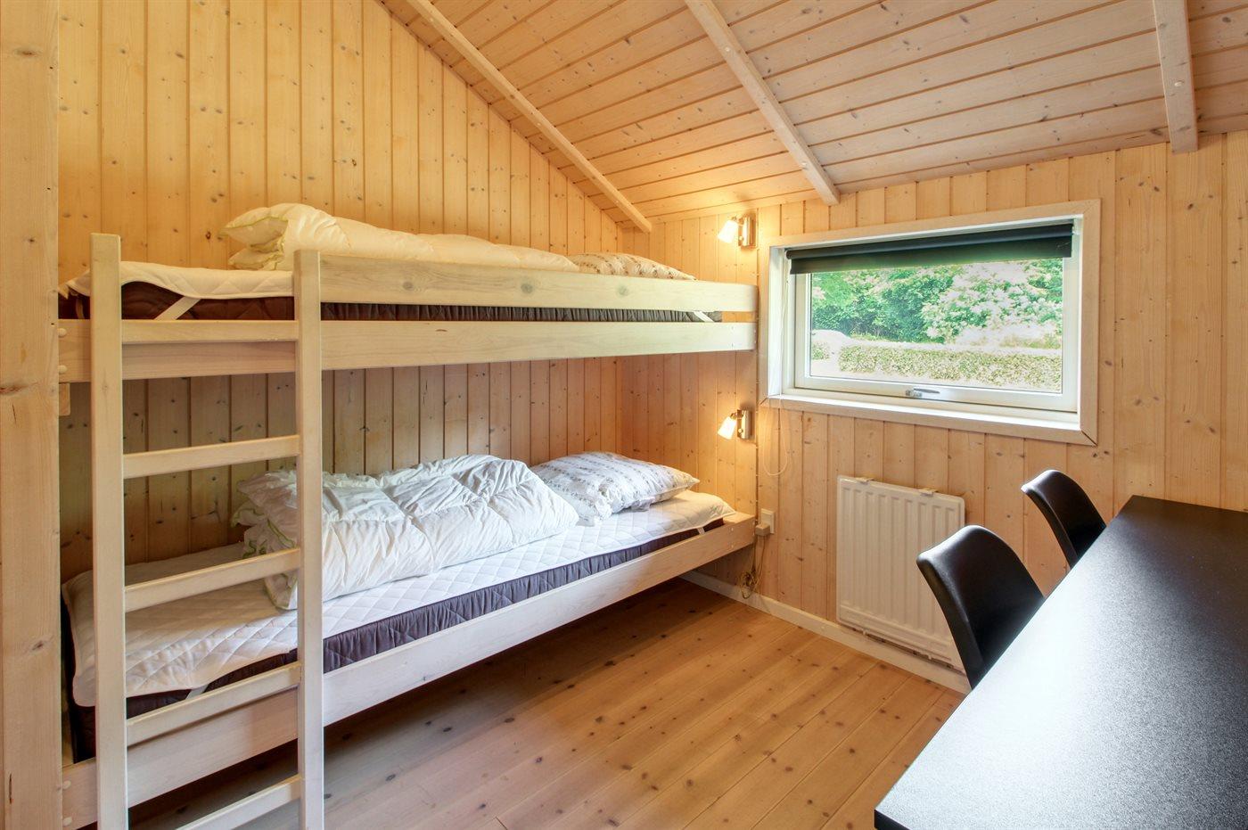 Der er i alt 3 soveværelser. Sovepladserne fordeler sig på: 4 sovepladser i dobbeltsenge. 2 sovepladser i køjeseng. 2 sovepladser i alkove. 2 af disse sovepladser befinder sig i stuen.
