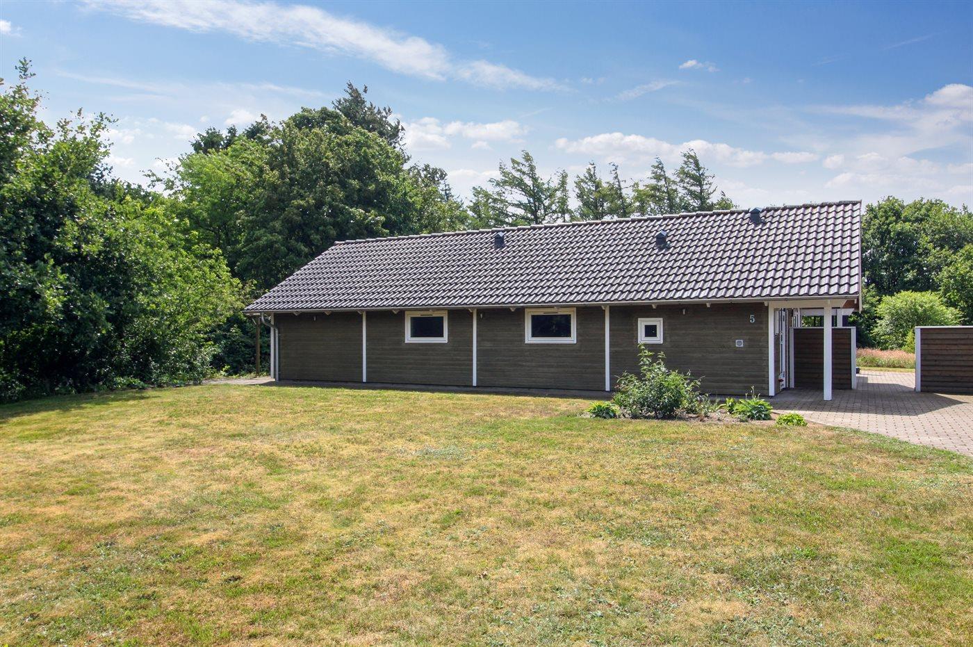 Ferieboligen er beliggende på en 850 m² stor naturgrund. Grunden er indhegnet. Der er 30000 m til havet. Der er 20000 m til Vadehavet. Nærmeste forretning er beliggende i en afstand af 600 m. Til ferieboligen hører åbent og 10 m2 overdækket terrasseareal. Der findes udendørs legeredskaber i garagen. Der ligger en legeplads i en afstand af 200 m. Parkering ved ferieboligen.