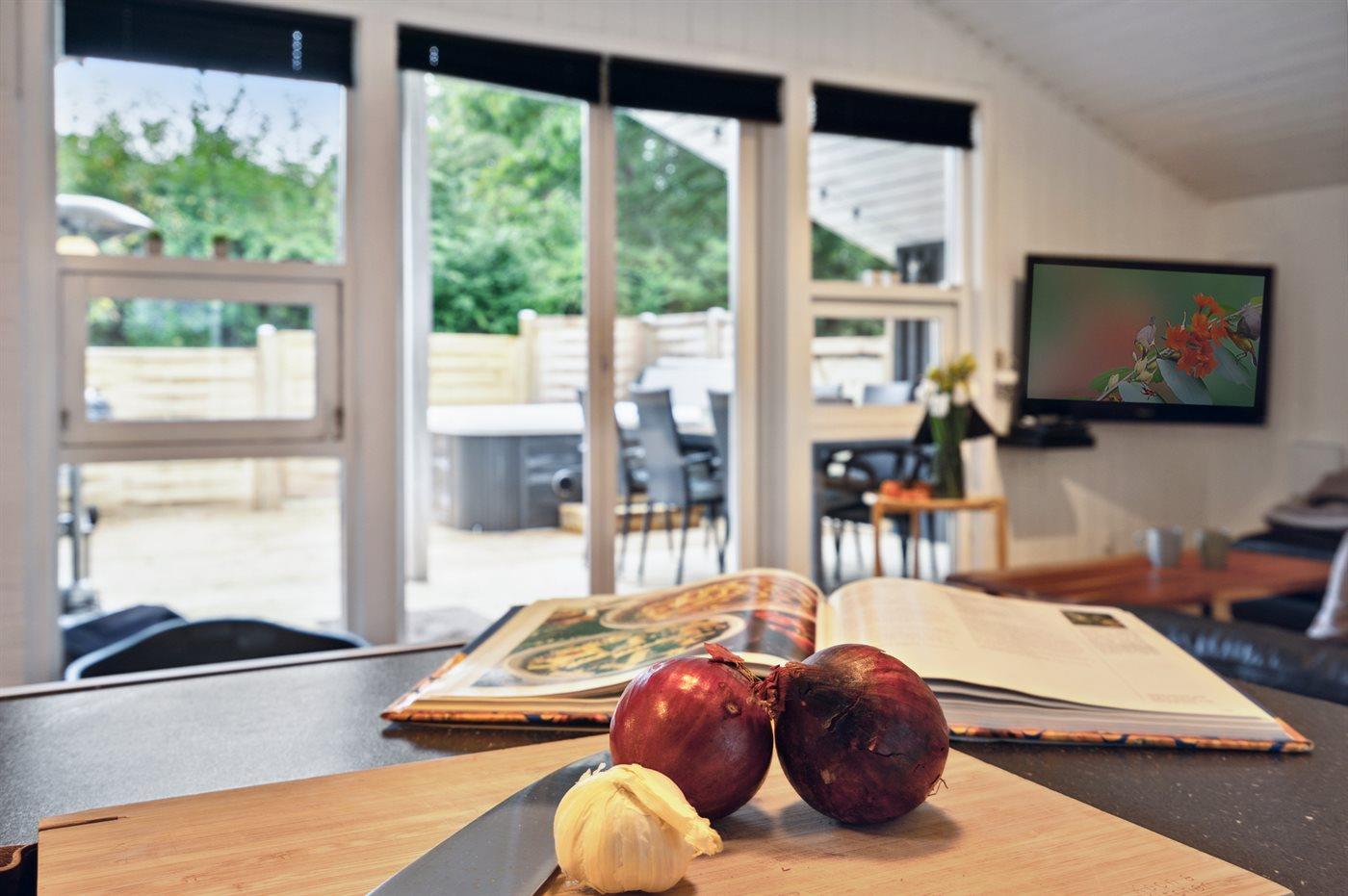 Køkkenet er udstyret med 1 køleskab. Der er 4 induktionskogeplader, varmluftovn, mikrobølgeovn samt opvaskemaskine.