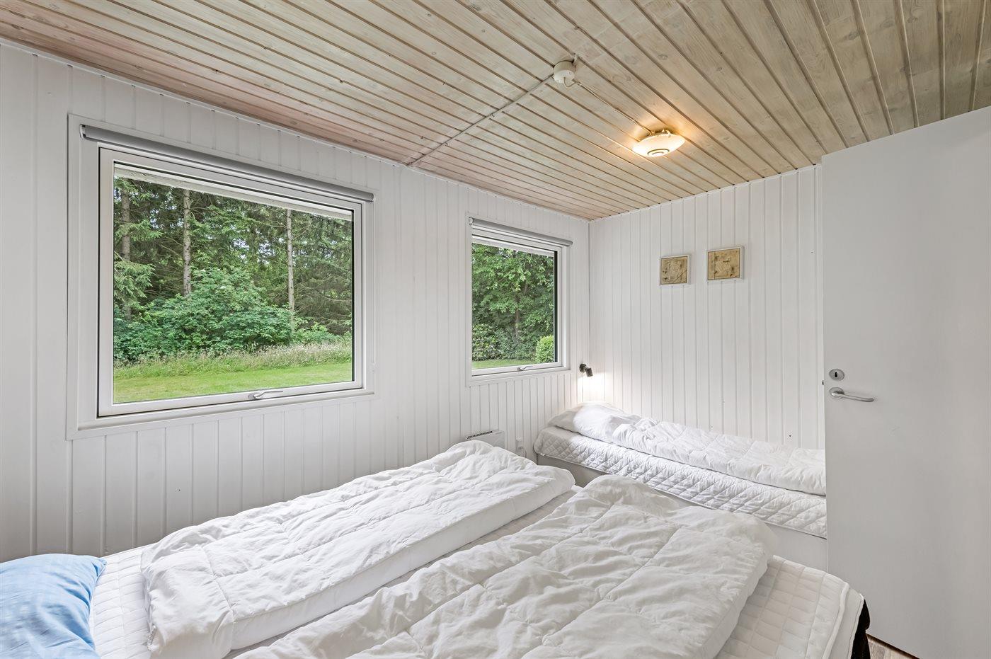 Huset er indrettet med køkken- alrum samt 2 soveværelser; 1 med dobbeltseng og 1 med dobbeltseng og enkeltseng.