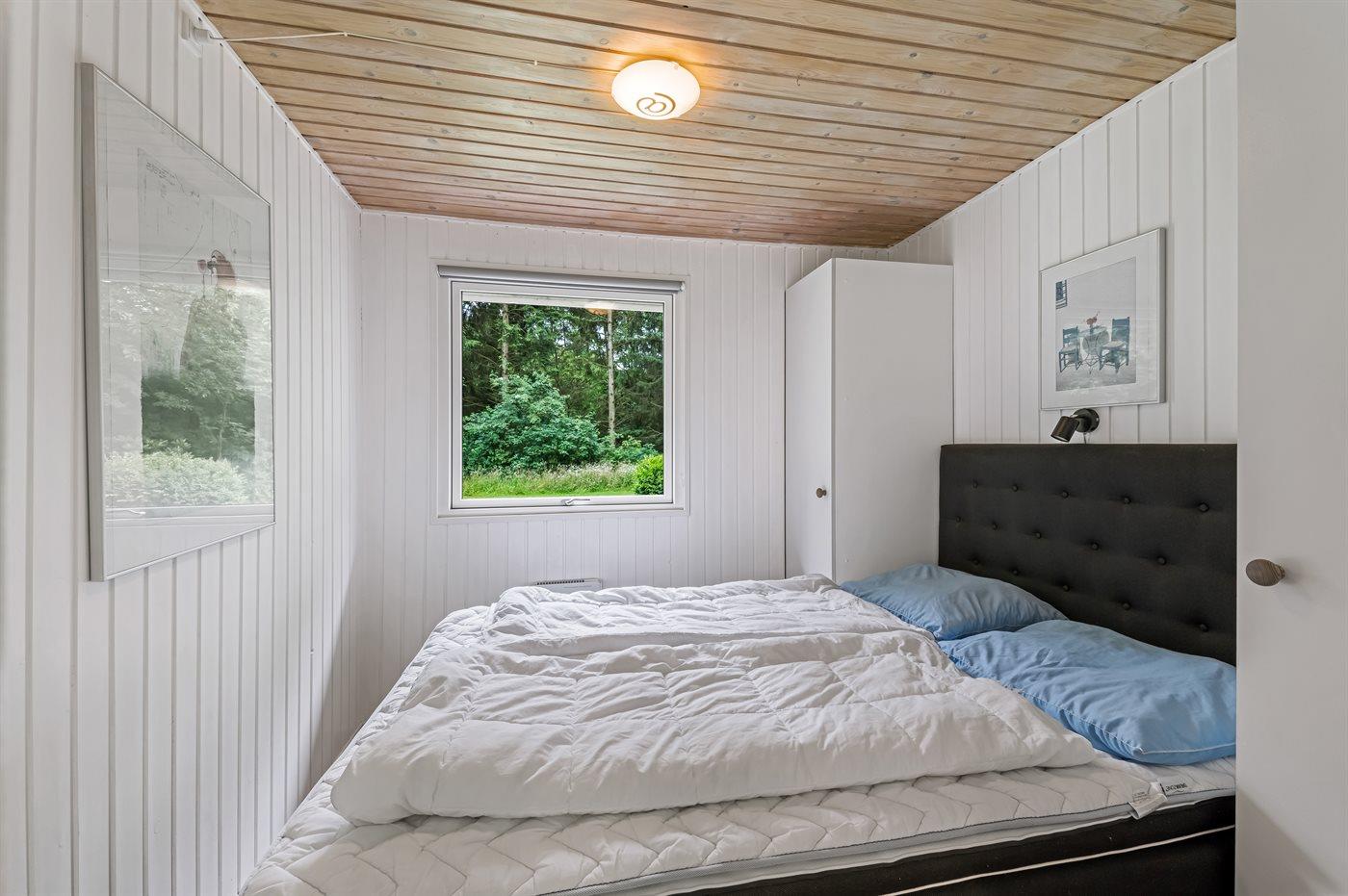 Der er i alt 2 soveværelser. Sovepladserne fordeler sig på: 4 sovepladser i dobbeltsenge. 1 soveplads i enkeltseng. Derudover er der 1 stk. barneseng.