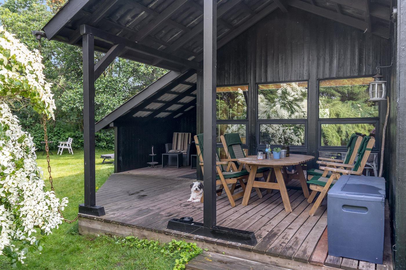 Hyggeligt sommerhus midt i skoven med indhegnet have og sauna for afslapning.