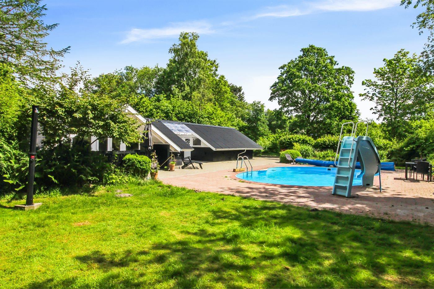Dejligt sommerhus på 95 m2 i det populære sommerhusområde Arrild tæt på dejlig skov og natur med skønne, delvist overdækkede terrasser og lukket have. På grunden findes der en udendørs swimmingpool med rutsjebane og vippe. Swimmingpoolen bliver opvarmet vha. en varmepumpe og kan benyttes i perioden fra den 01.05 til den 01.10.