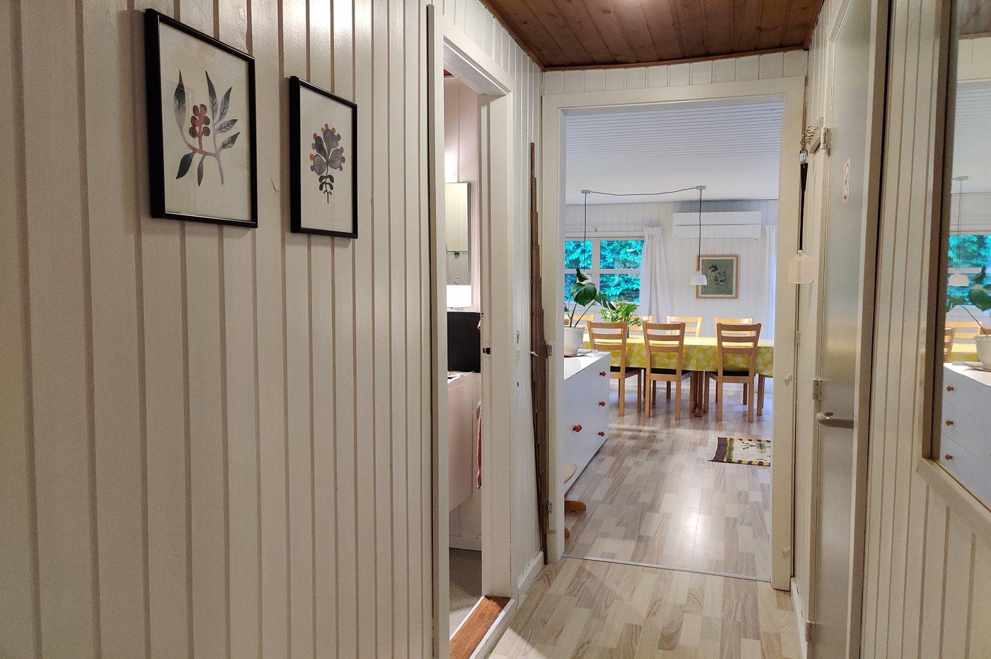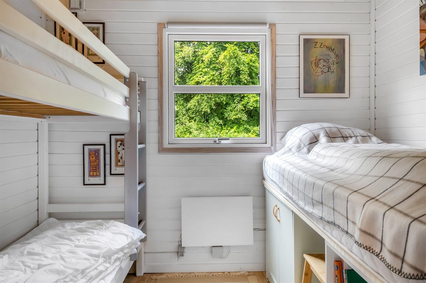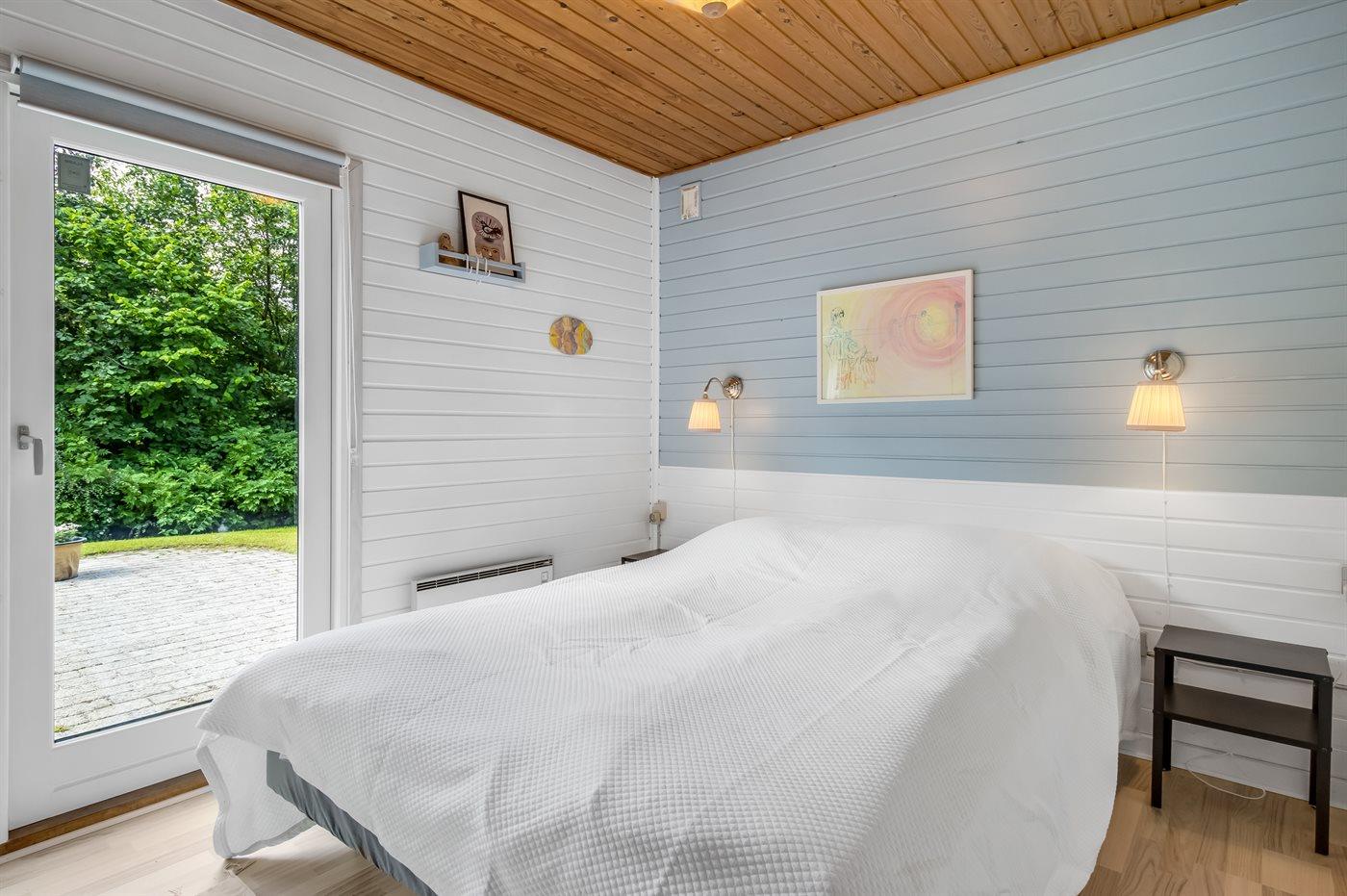 Der er i alt 3 soveværelser, hvoraf 2 af dem har dobbeltsenge. Det sidste soveværelse er indrettet med en enkeltseng samt en køjeseng. Herudover er der en soveplads på den sovesofa, som står i stuen.