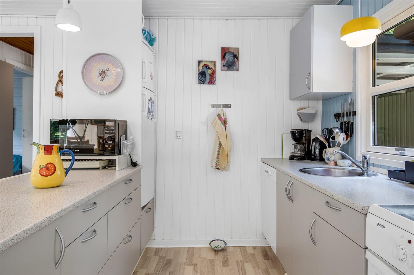 I køkkenet er der køleskab, fryser, 4 keramiske kogeplader, varmluftovn, mikrobølgeovn samt opvaskemaskine. Badeværelset har toilet, bruseniche samt vaskemaskine. Der er desuden en højstol og en voksencykel til rådighed.