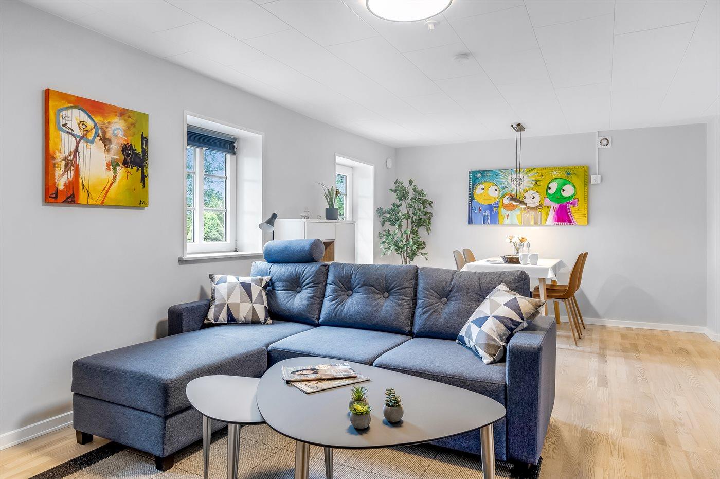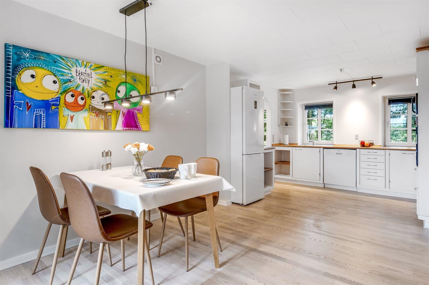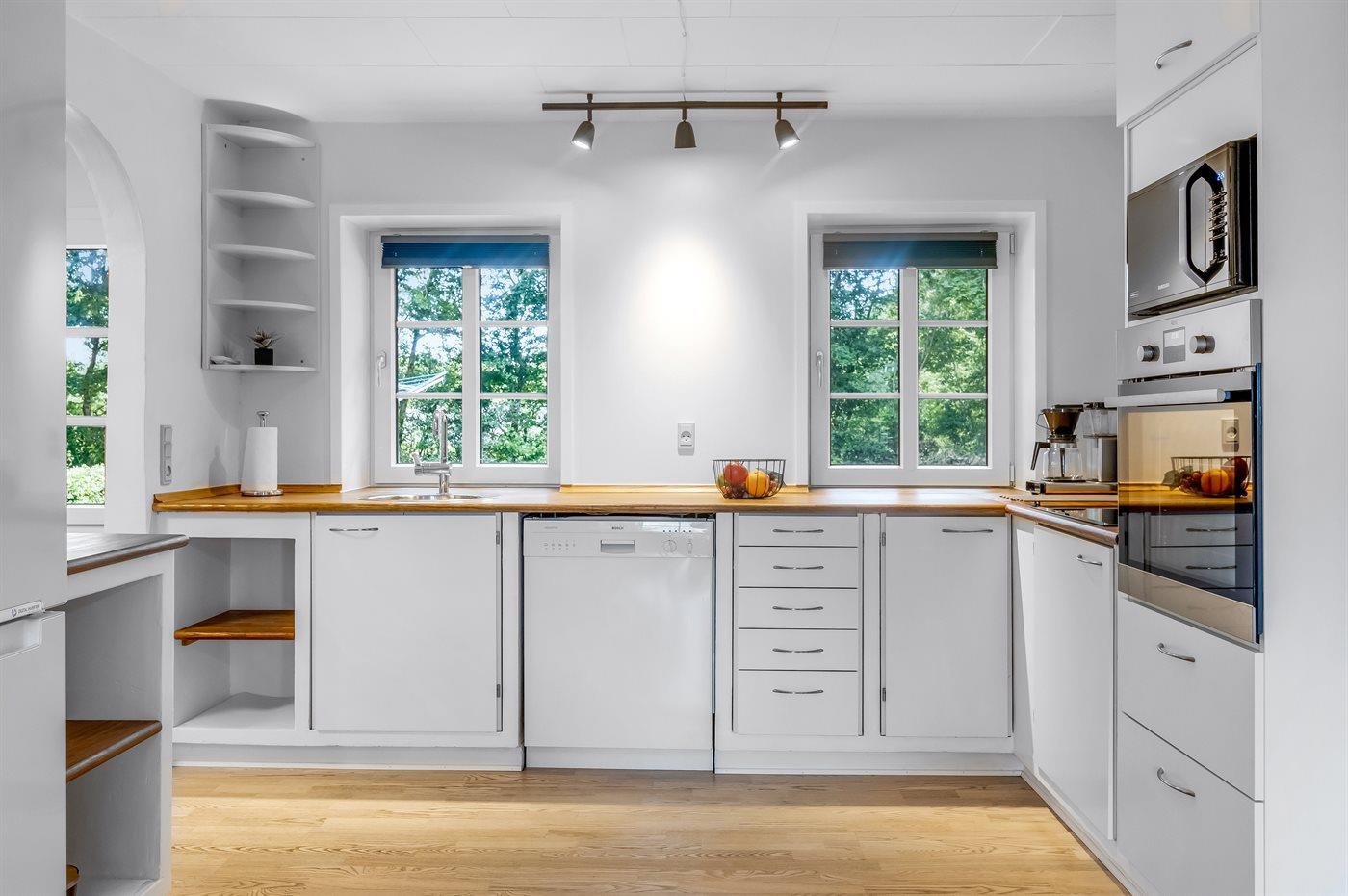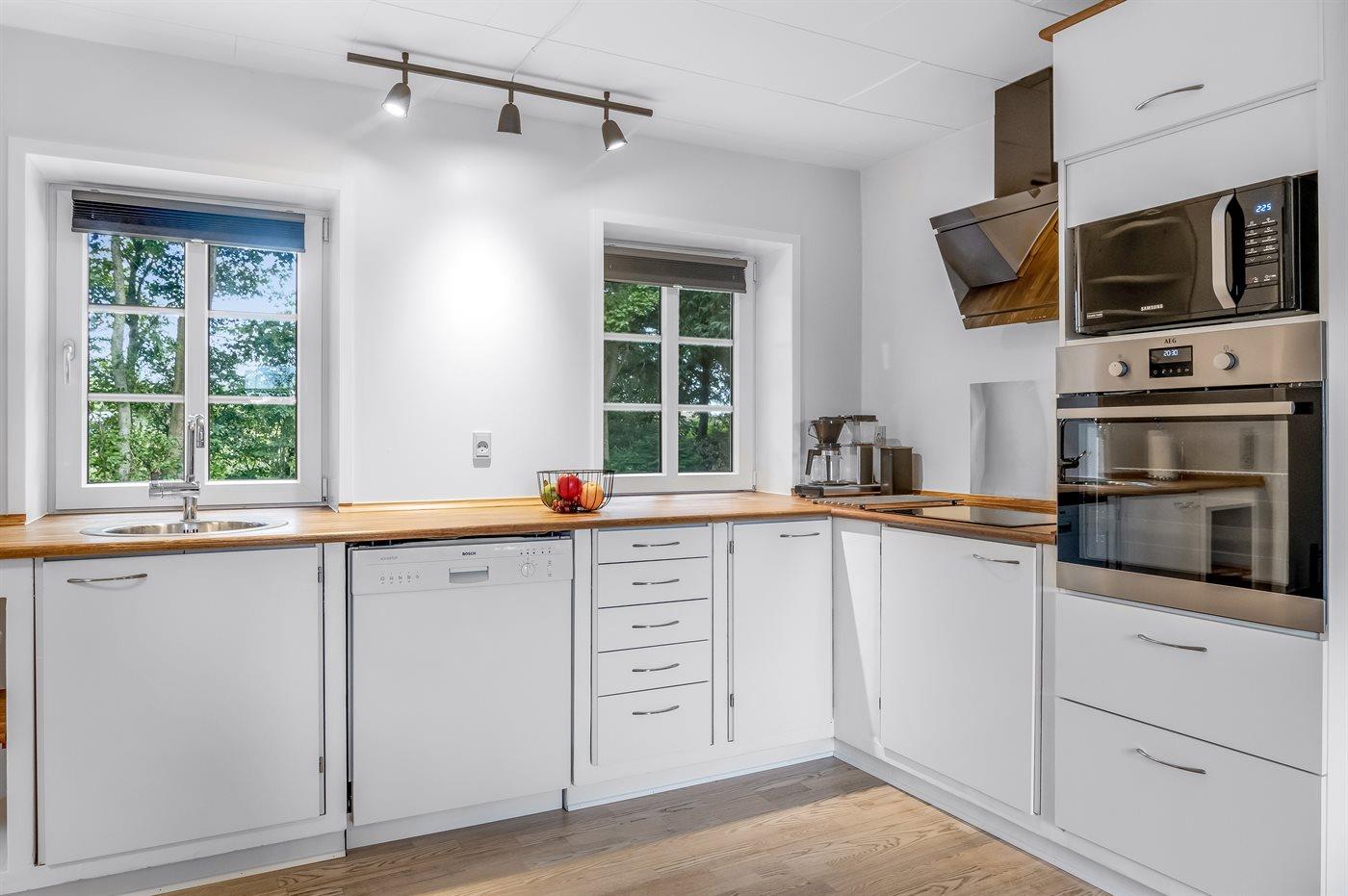 Køkkenet er udstyret med 1 køleskab. Der er 4 keramiske kogeplader, varmluftovn, mikrobølgeovn samt opvaskemaskine.