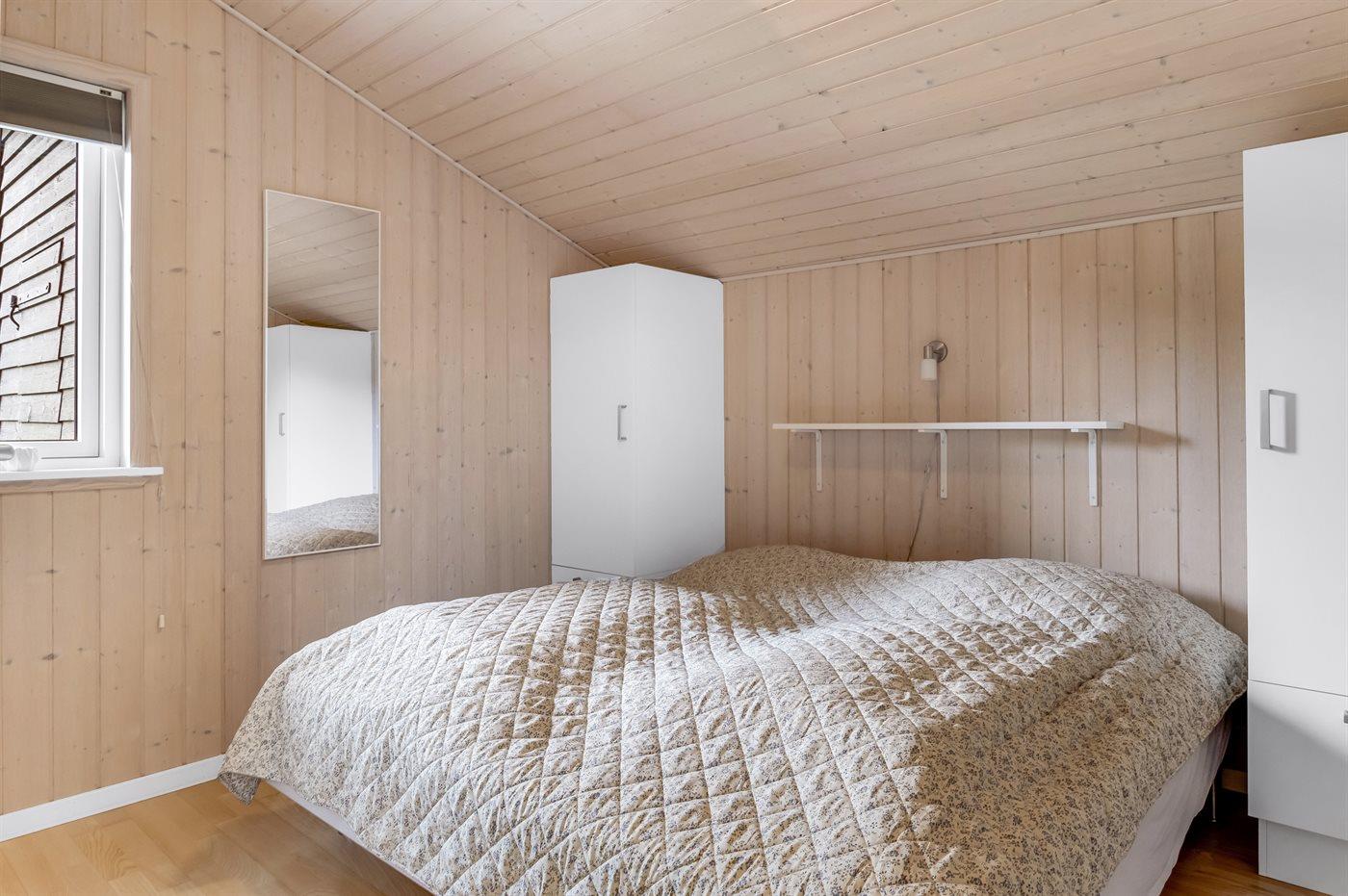 Der er i alt 4 soveværelser. Sovepladserne fordeler sig på: 6 sovepladser i dobbeltsenge. 2 sovepladser i enkeltsenge.