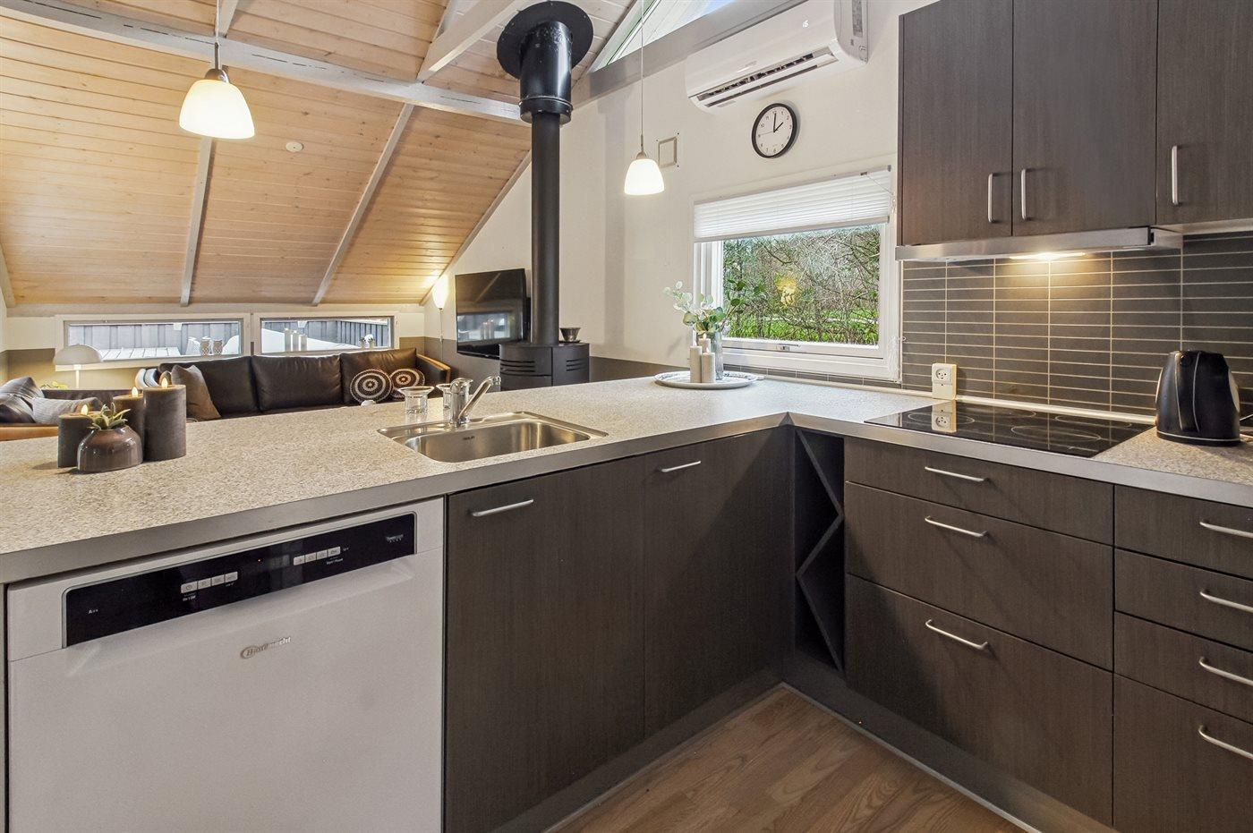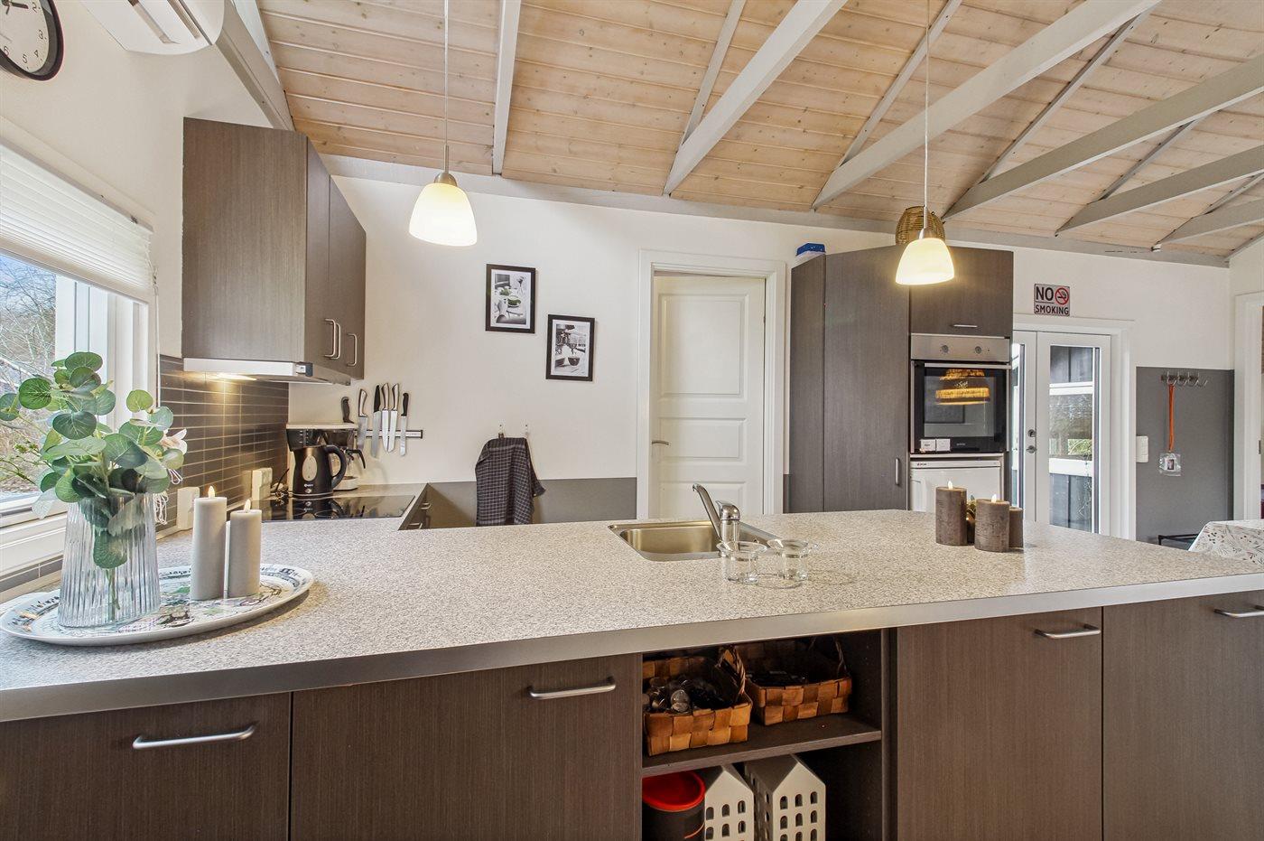 Køkkenet er udstyret med 1 køleskab. Der er 4 keramiske kogeplader, varmluftovn, mikrobølgeovn samt opvaskemaskine.
