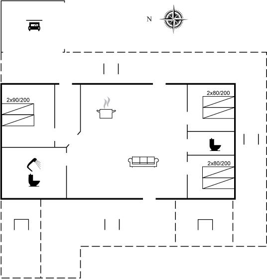 Ferieboligen er beliggende på en 874 m² stor naturgrund. Der er 30000 m til havet. Der er 20000 m til Vadehavet. Der er en sø i en afstand af 500 m. Nærmeste forretning er beliggende i en afstand af 1100 m. Der er en golfbane i en afstand af 1500 m. Til ferieboligen hører åbent terrasseareal. Desuden er der overdækket terrasse. Der er redskabsrum. Gynge. Udendørs bruser. Grill til rådighed. Der er carport til rådighed. Der er installeret stik til opladning af elbil. Type 2 stik. Med 11 kW ladeeffekt. Parkering ved ferieboligen.