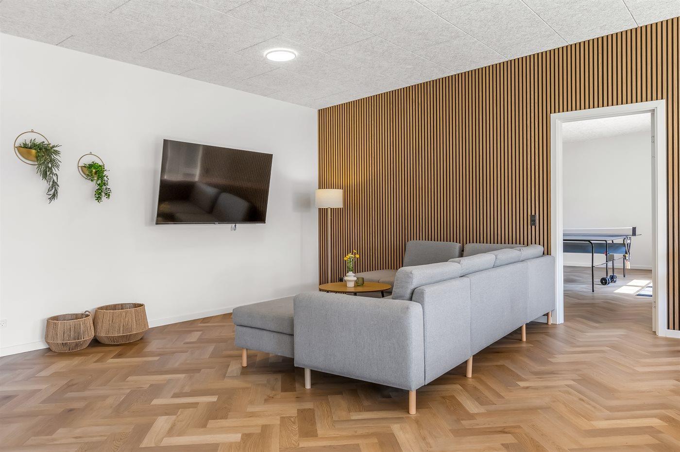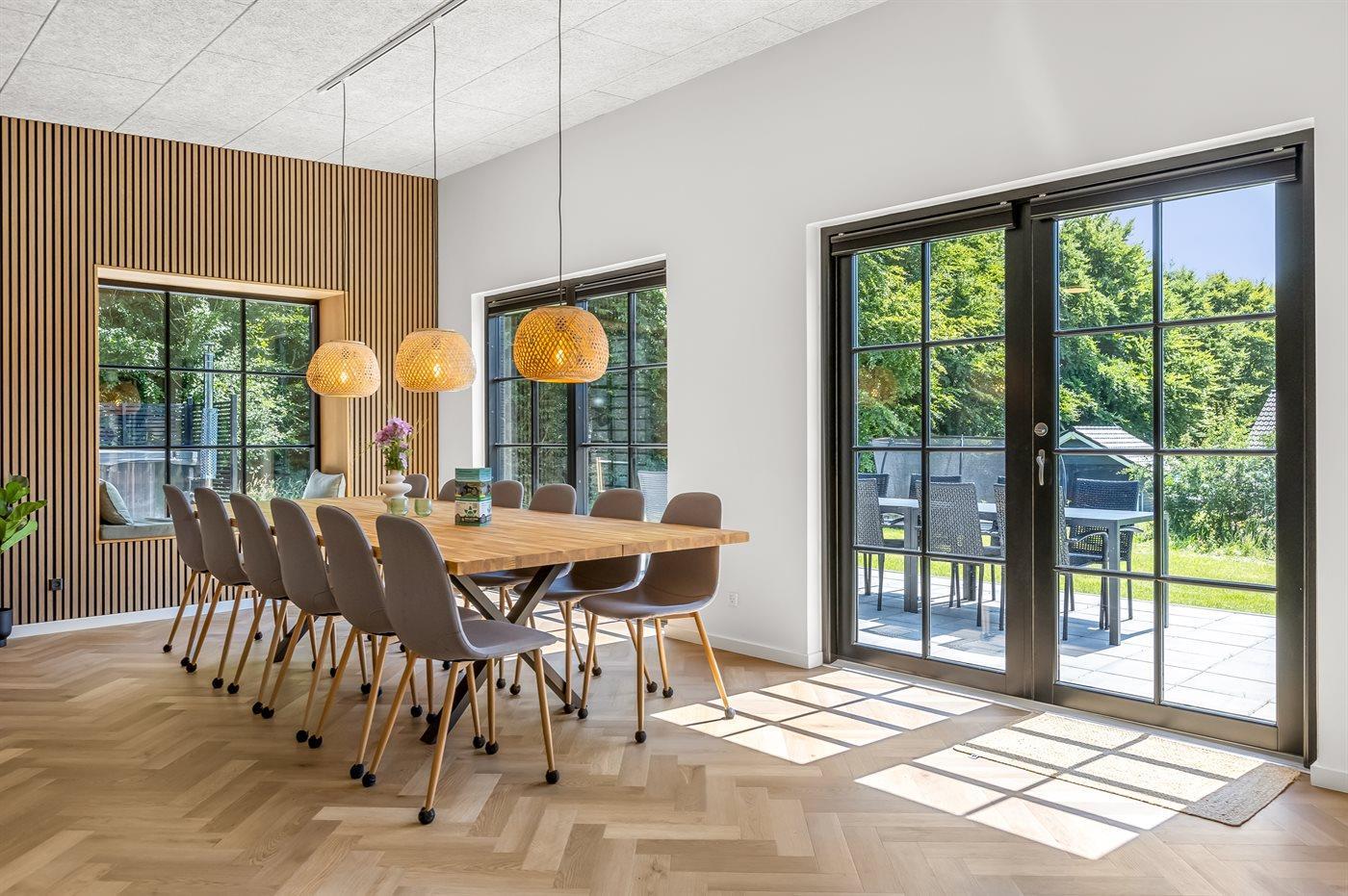 Moderne sommerhus med aktivitetsrum og vildmarkskar