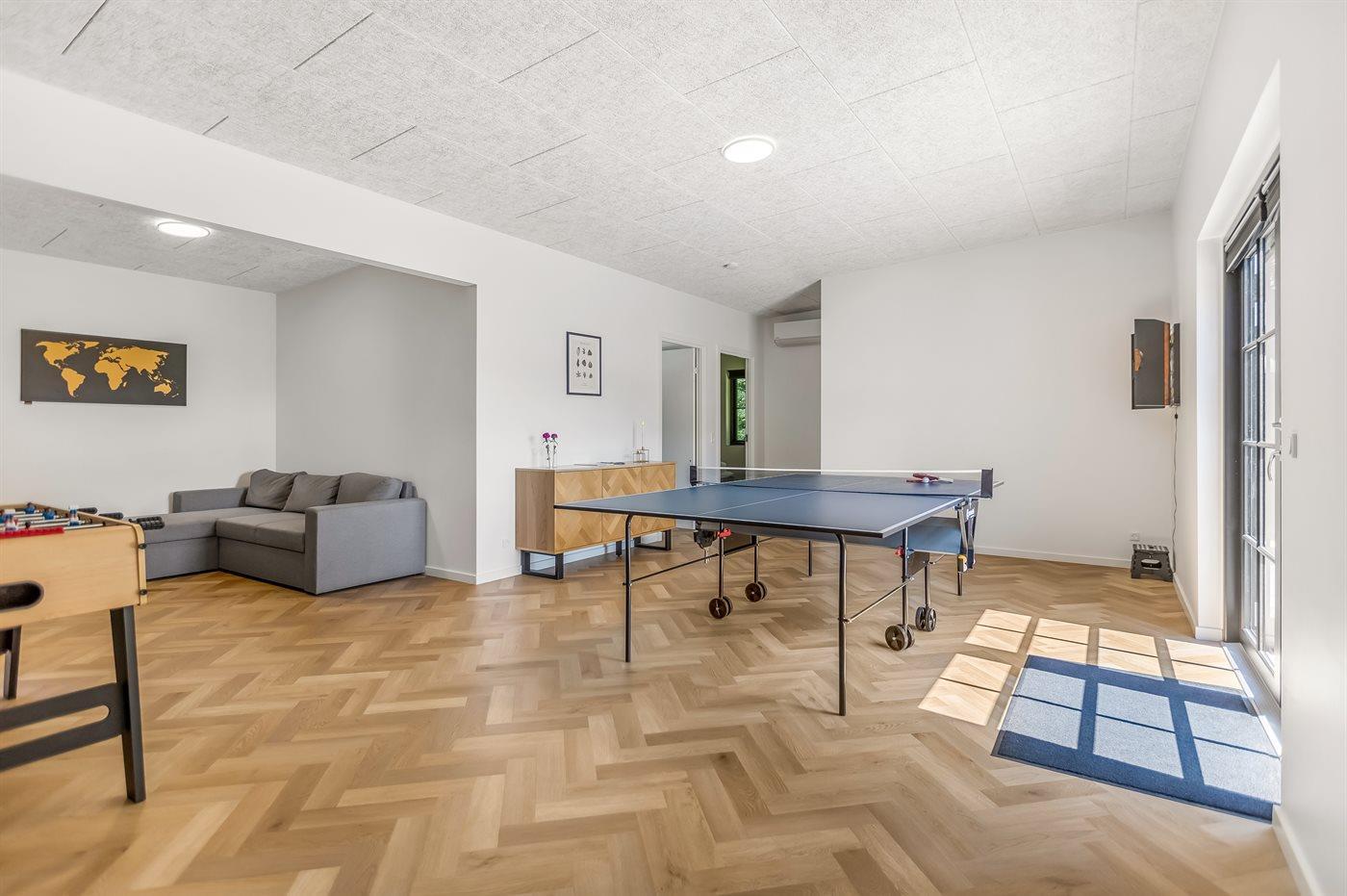 I aktivitetsrummet er der følgende udstyr: Bordtennis. Dart. Bordfodbold.