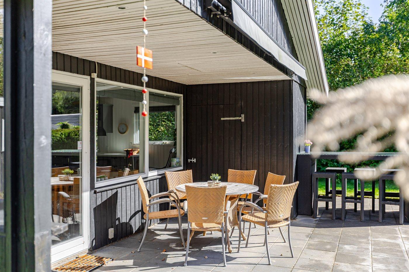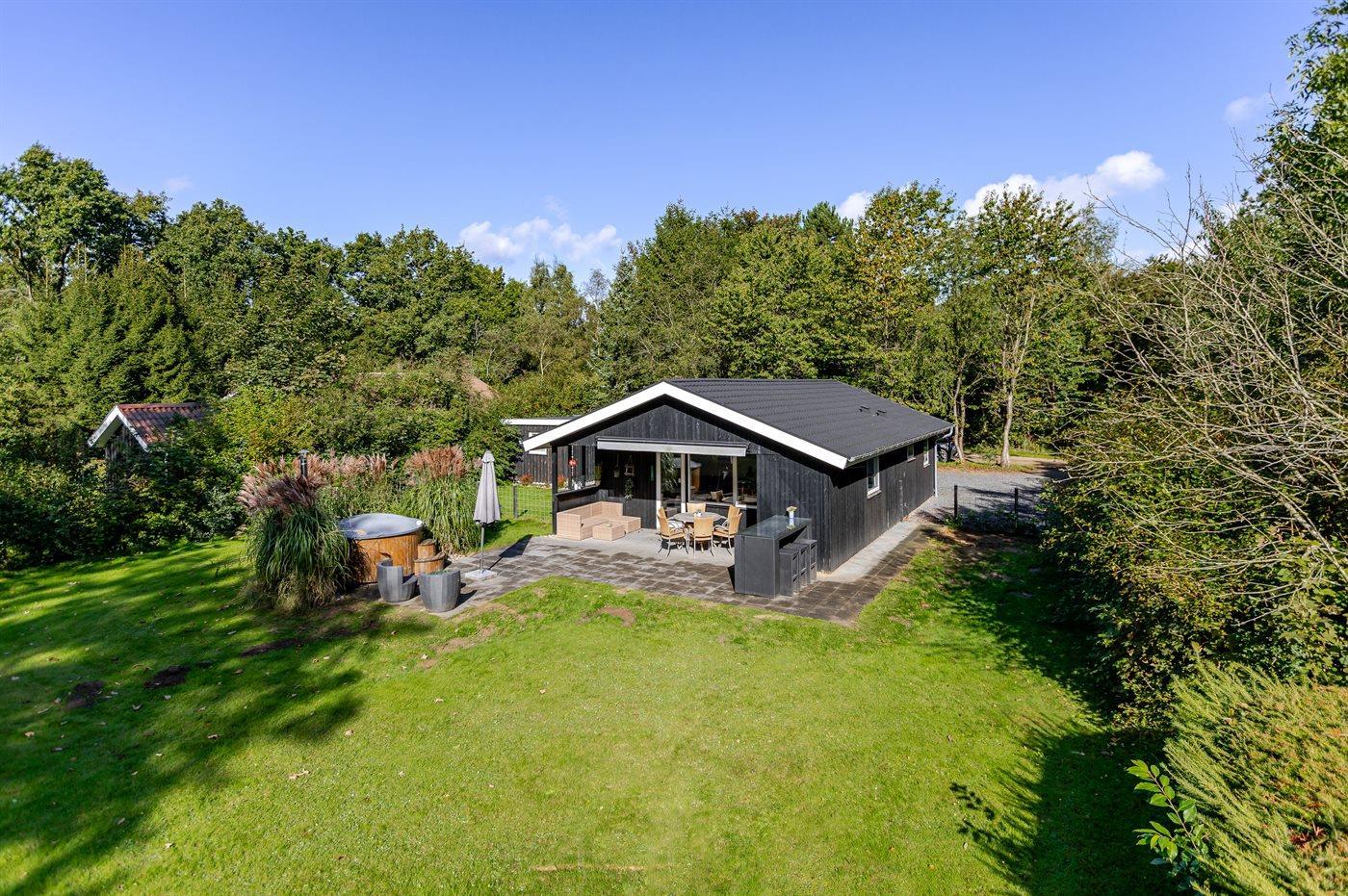 Utroligt skønt hus på dejlig ugenert grund. Her kan du nyde aftenen i det fantastiske vildmarkskar.
