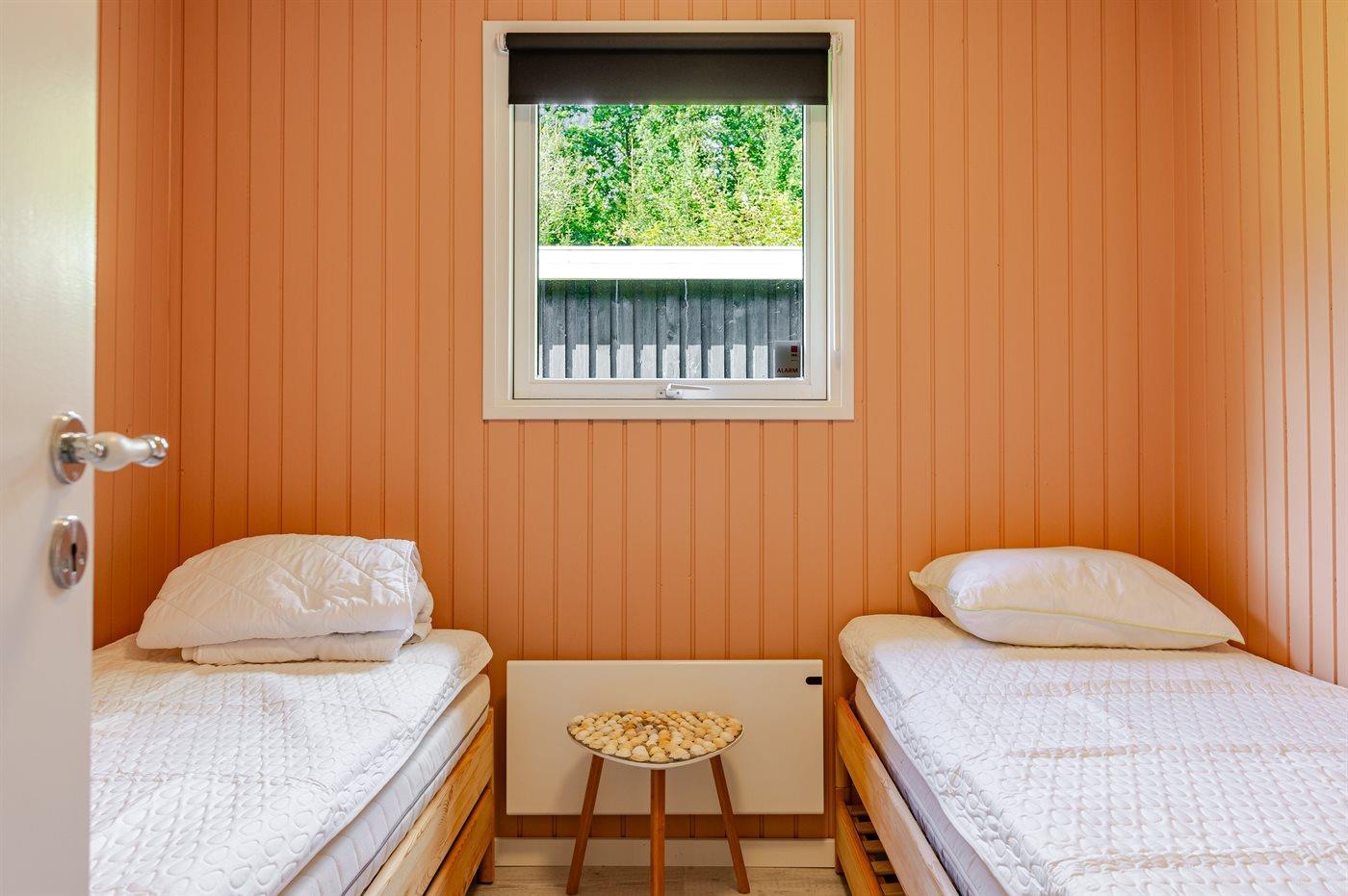 Der er i alt 3 soveværelser. Sovepladserne fordeler sig på: 4 sovepladser i dobbeltsenge. 2 sovepladser i enkeltsenge. Derudover er der 1 stk. barneseng.