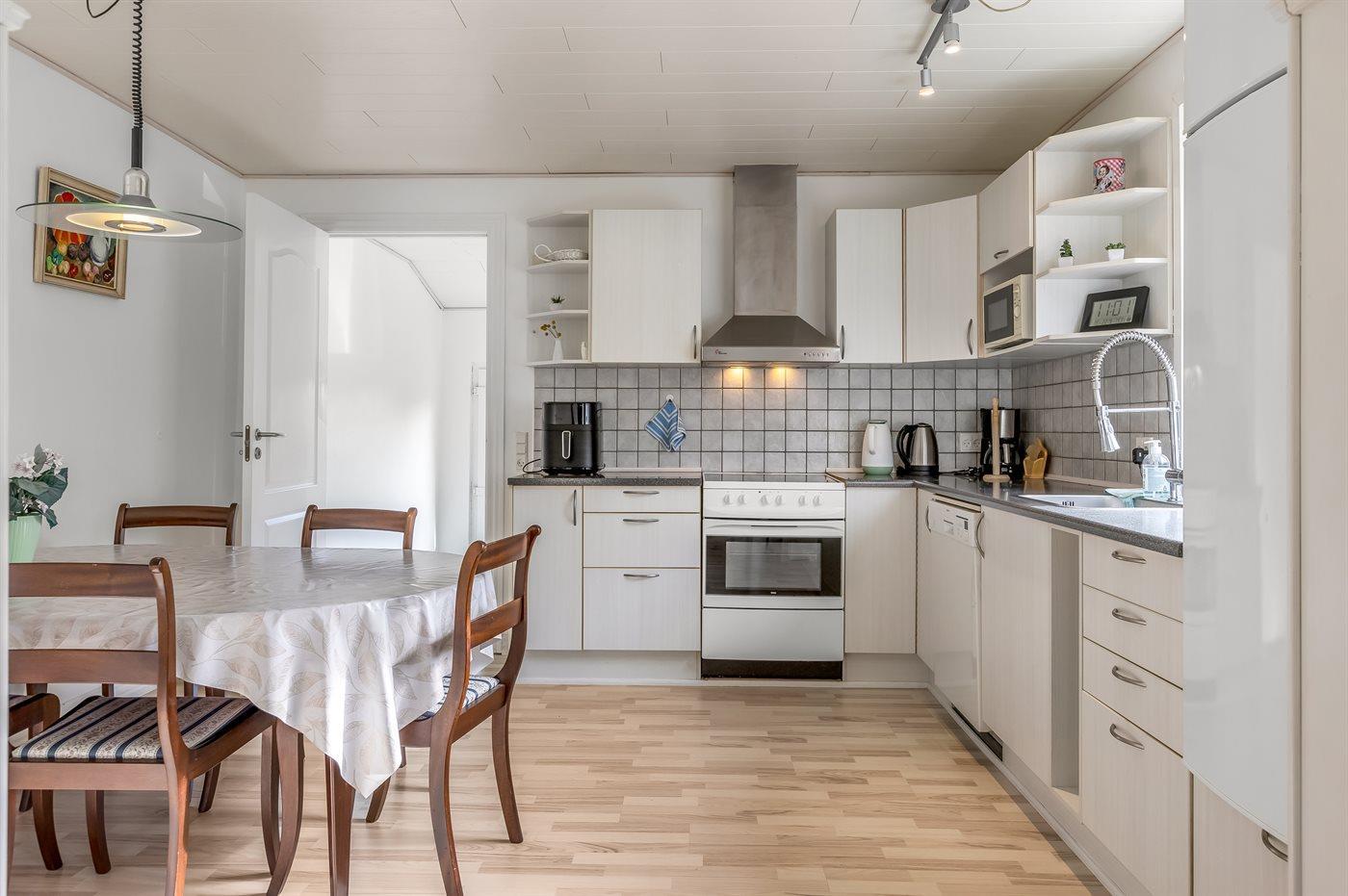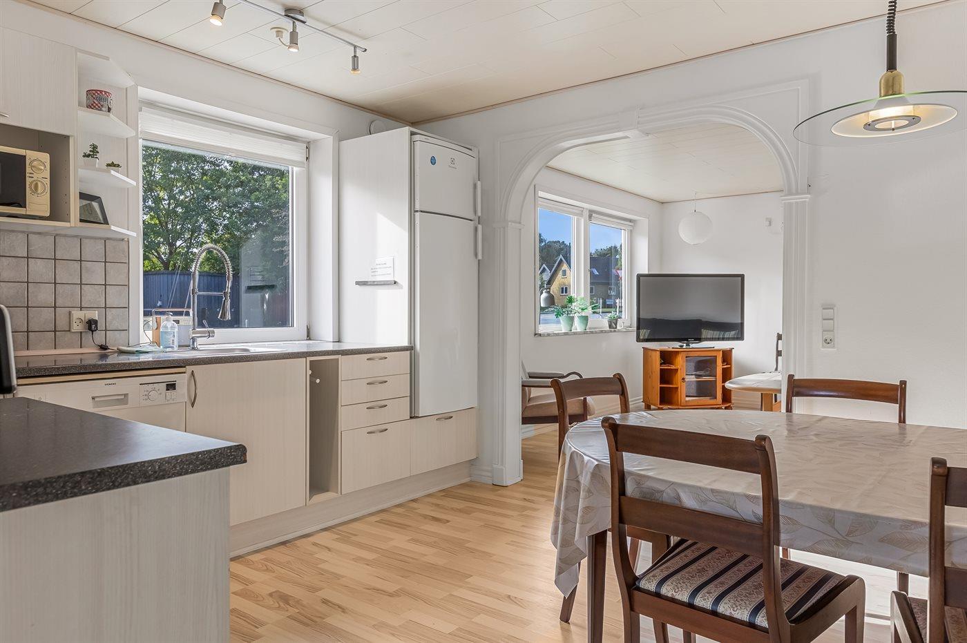 Køkkenet er udstyret med 1 køleskab. Der er 4 keramiske kogeplader, varmluftovn, mikrobølgeovn, Airfryer samt opvaskemaskine.