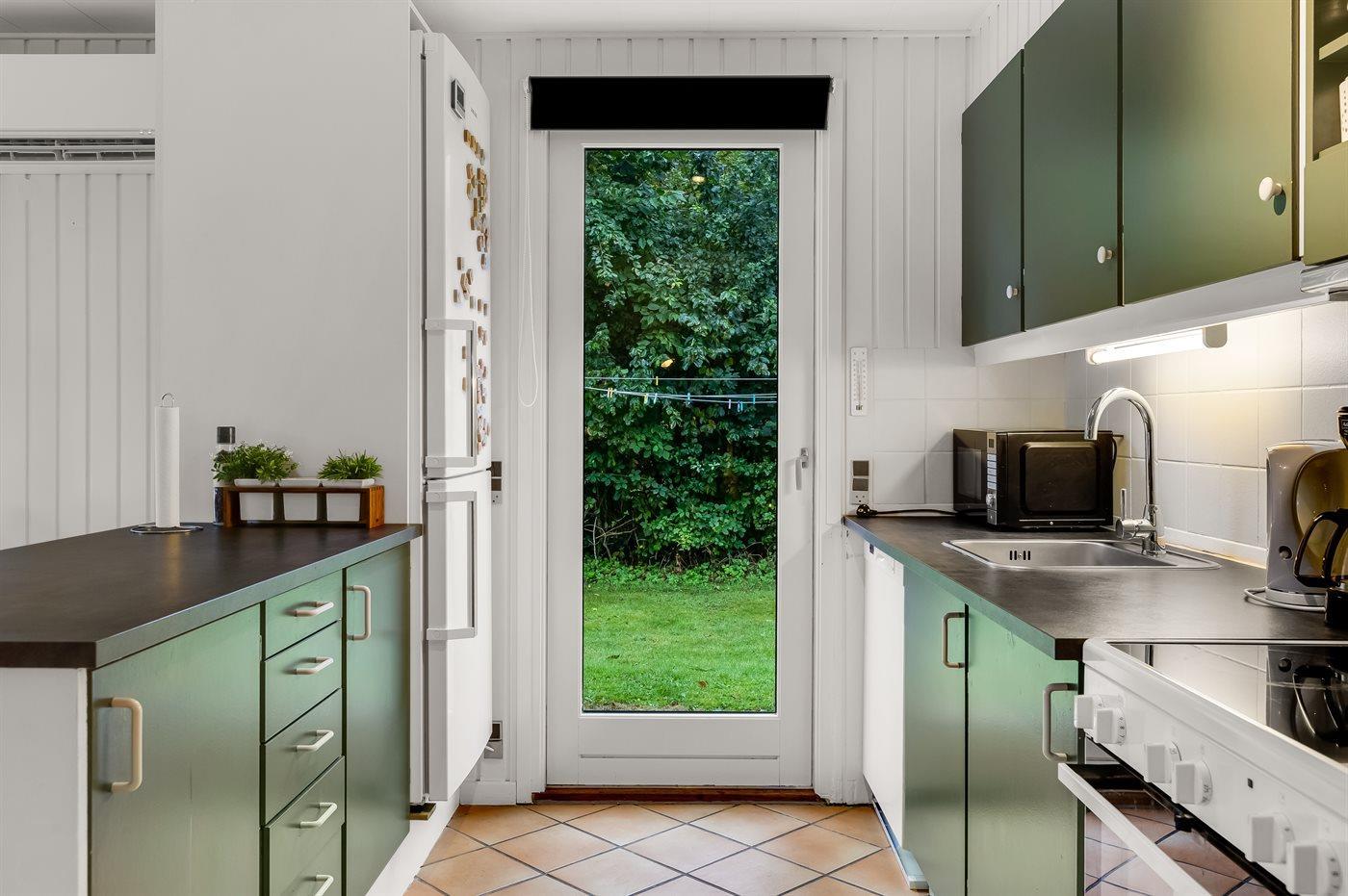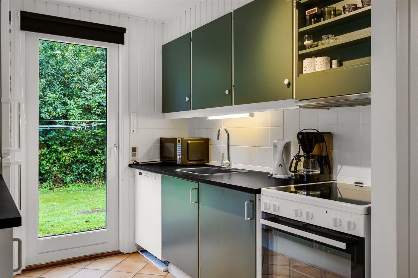 Køkkenet er udstyret med 1 køleskab. Der er 4 keramiske kogeplader, varmluftovn, mikrobølgeovn samt opvaskemaskine.