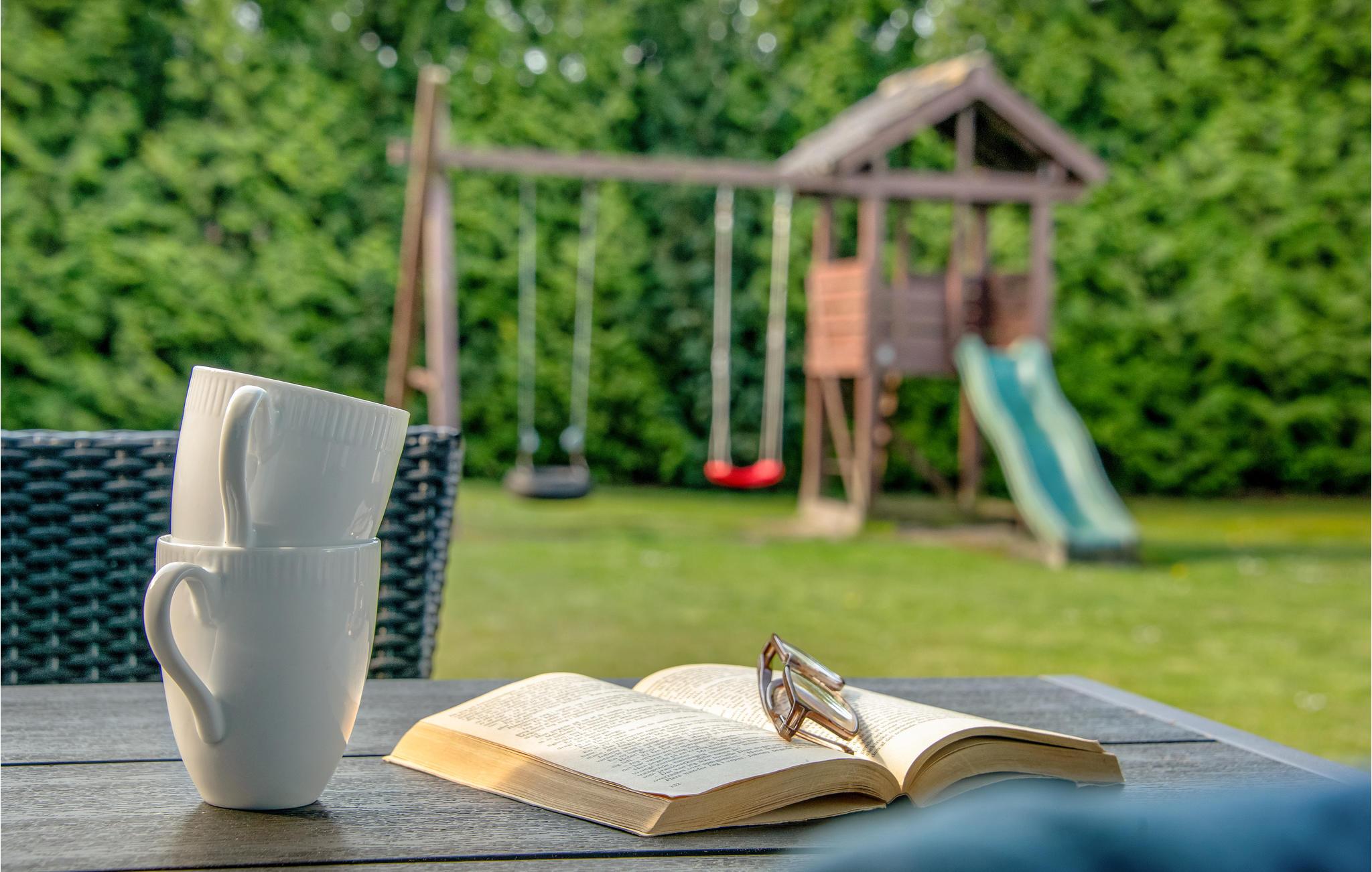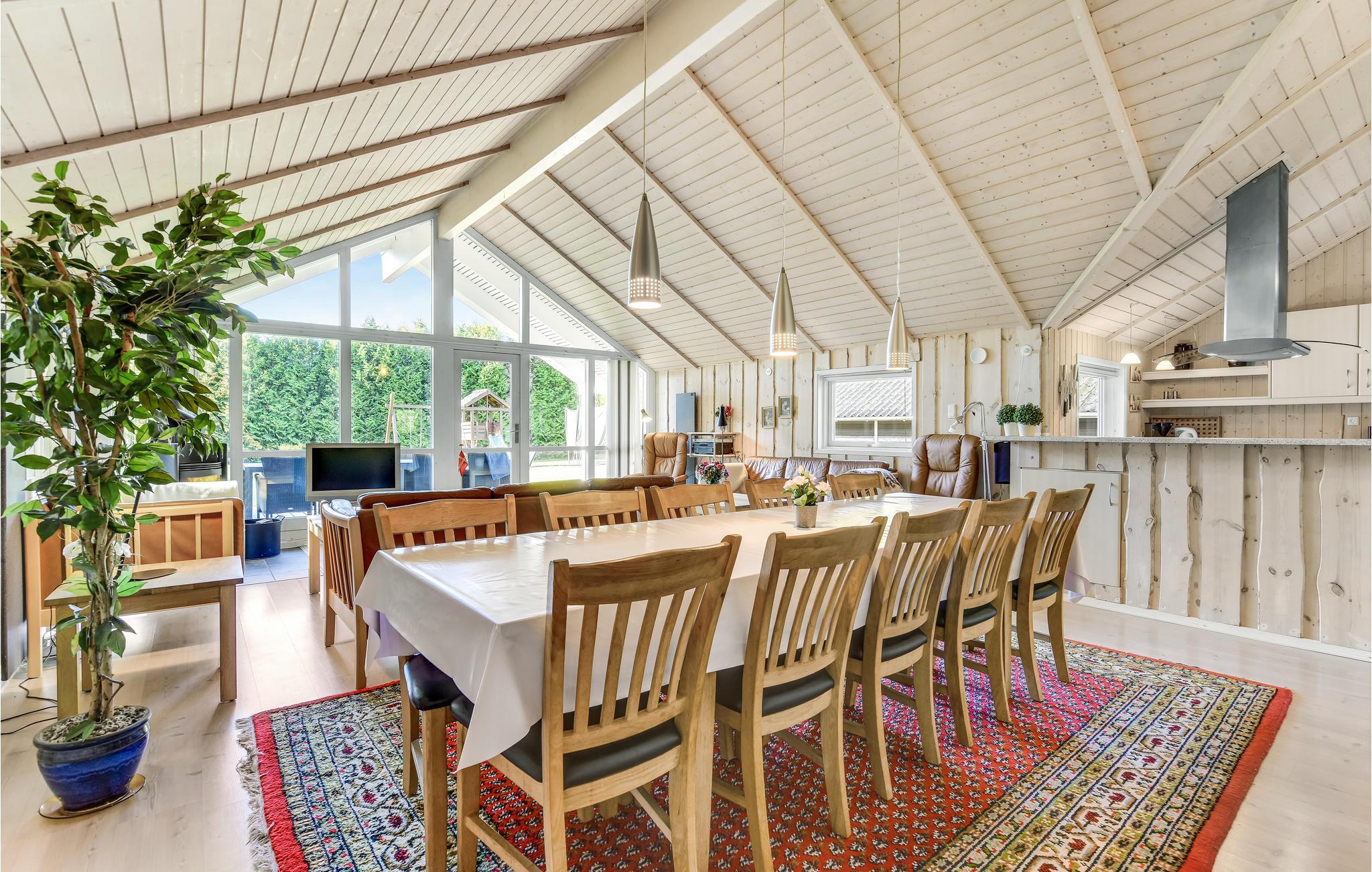 Rummeligt og veludstyret feriehus i Arrild Ferieby med sauna, spabad og legemuligheder for børn.