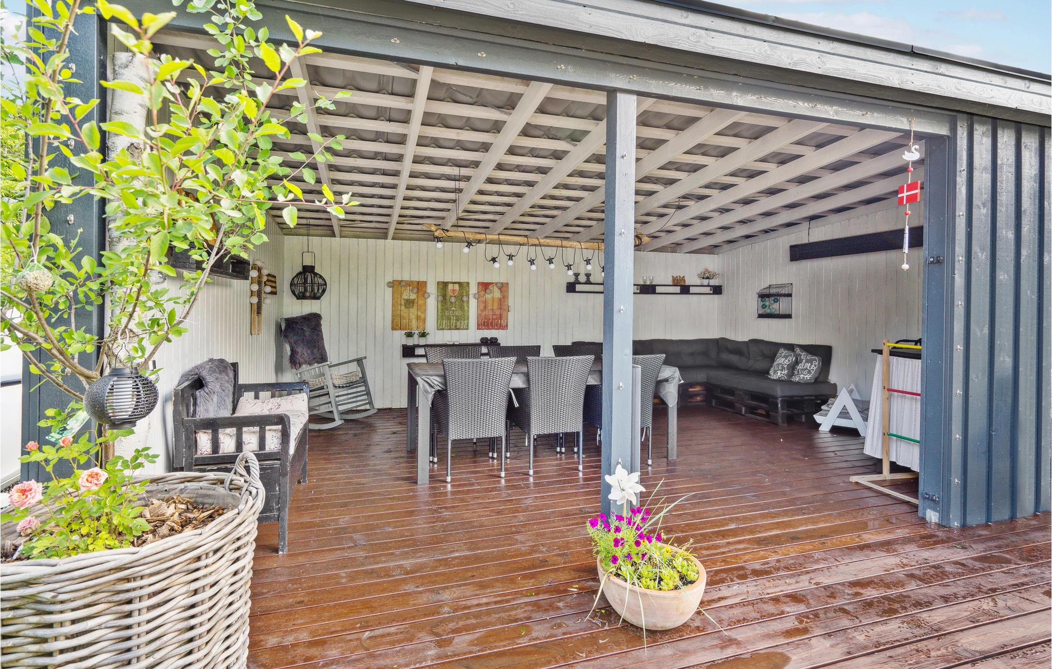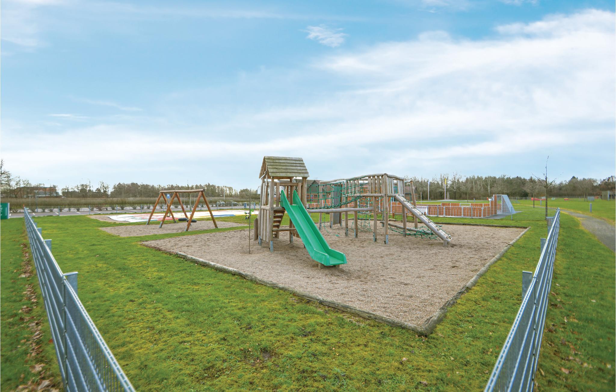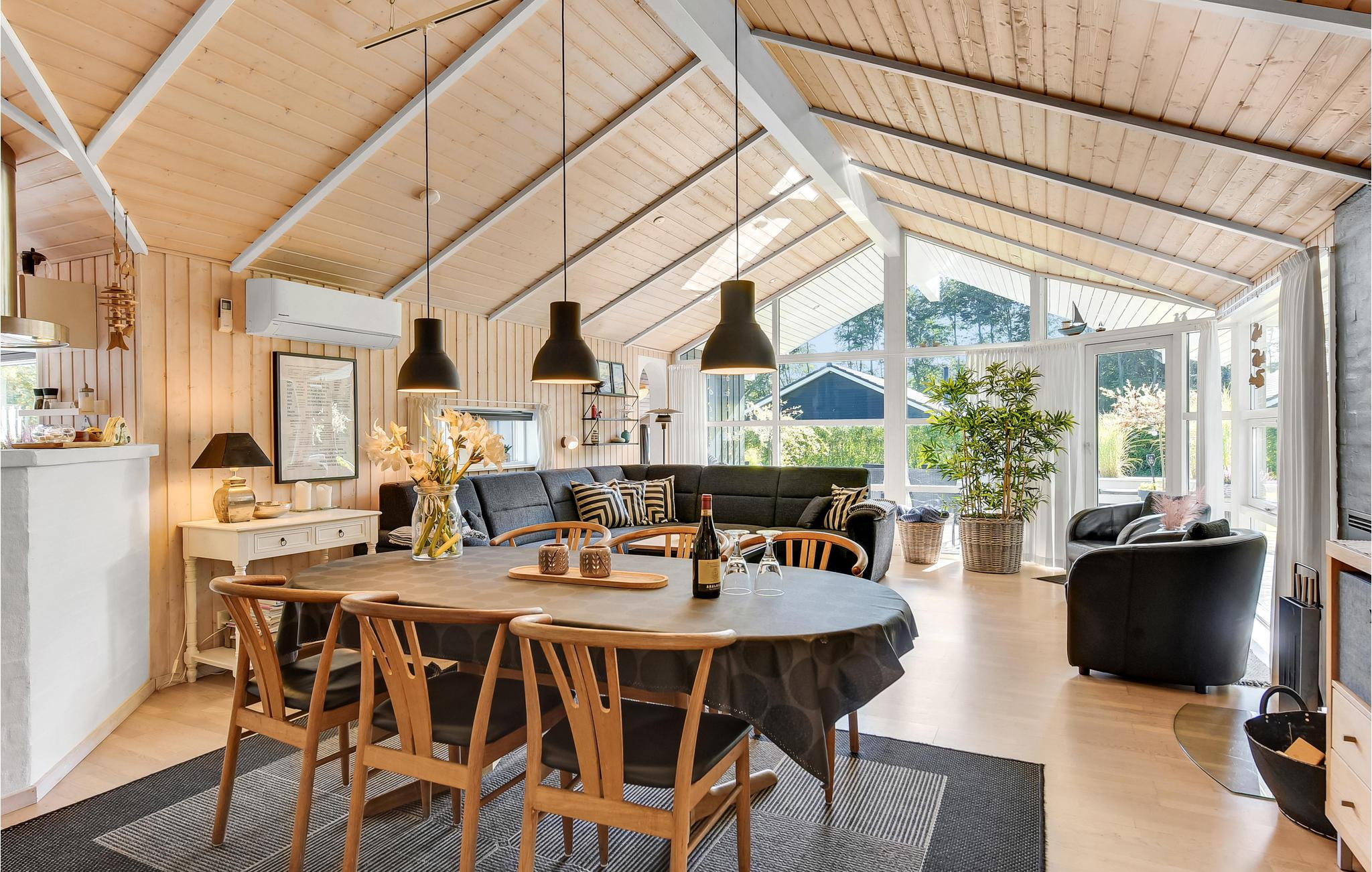 Dejligt træferiehus i Arrild Ferieby med spabad, sauna og stor terrasse nær fiskesø og aktiviteter.
