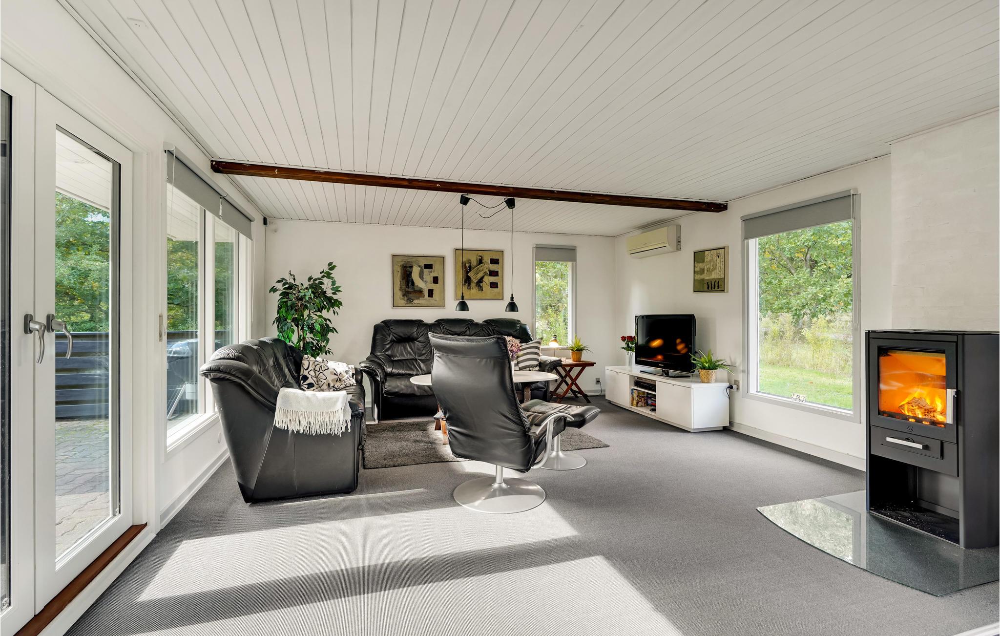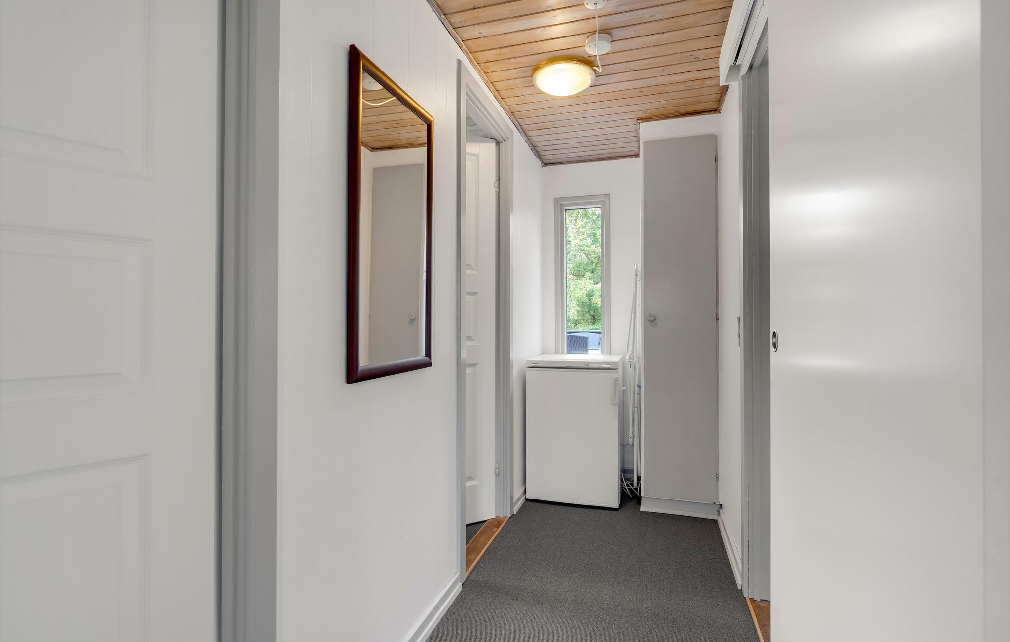 Velkommen til et dejligt sommerhus med 3 gode værelser. I hjertet af huset finder du køkkenalrummet, hvor I vil nyde mange gode timer i hinandens selskab. I kan også se frem til nogle glimrende faciliteter, herunder en dejlig brændeovn og den opvarmede håndklædetørrer, der sikrer jer varme håndklæder efter et dejligt brusebad. Fra køkkenalrummet er der direkte udgang husets terrasse, hvor I finder havemøbler og grill til jeres rådighed, så i let kan nyde feriens måltider udendørs.