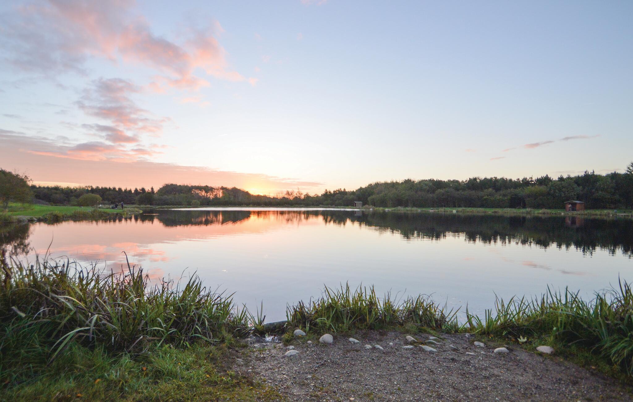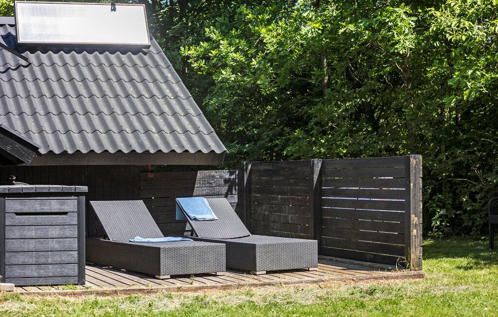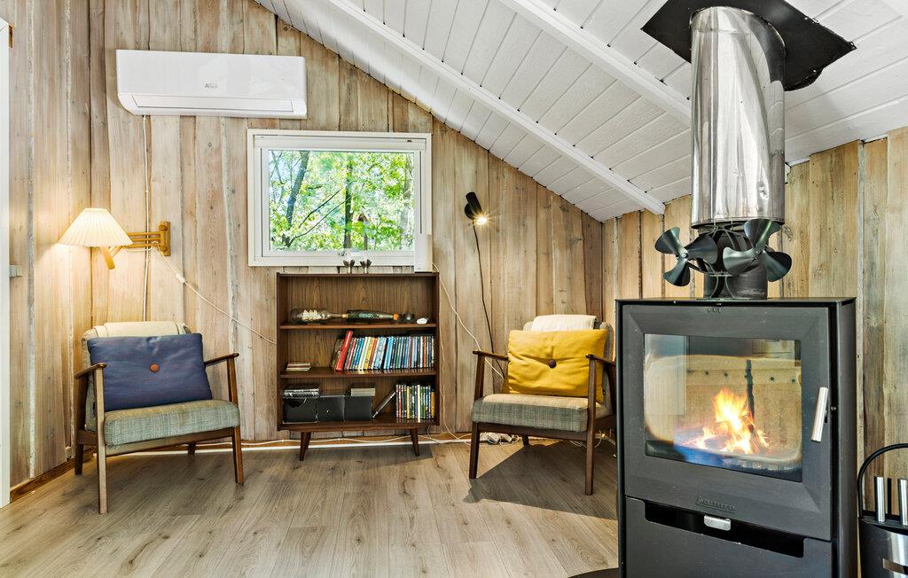Velkommen til dette dejlige hus, der ligger smukt omgivet af høje træer og danner en skøn, privat ramme om årets bedste uger med familien. Huset er nydeligt indrettet med flotte træpaneler, højt til loftet og store vinduespartier, der lader dagslyset sive ind og giver en fin udsigt til det grønne. Hvis vejret er til den kølige side, kan I fyre op i brændeovnen, sætte jer godt til rette med lidt lækre snacks og lade en begivenhedsrig dag gå på hæld med en god film på tv'et til lyden af den knitrende ild.