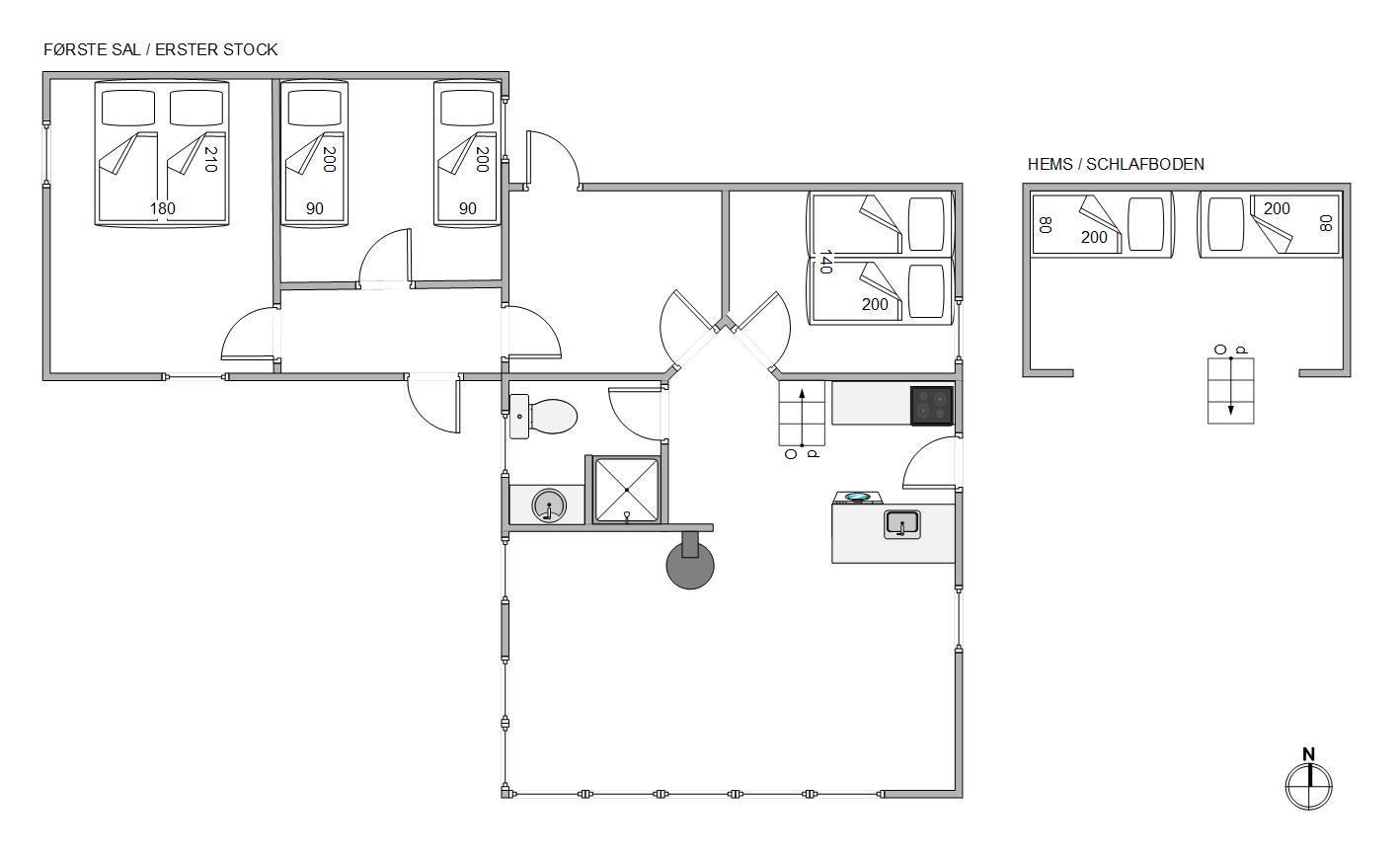 Kronjuvelen i dit feriehus i Arrild er uden tvivl den indbydende stue, hvis midtpunkt er en hyggelig brændeovn. Efter en oplevelsesrig dag i området kan du slappe af her og nyde varmen fra ilden. De pladsoptimerede 96m² rummer tre soveværelser; ét med en dobbeltseng, ét med en 3/4 seng samt et værelse med 2 enkeltsenge, så I alle kan finde den komfort og privatliv, I har brug for. På hemsen er der ligeledes 2 sovepladser. En barneseng og en barnestol er også til rådighed.