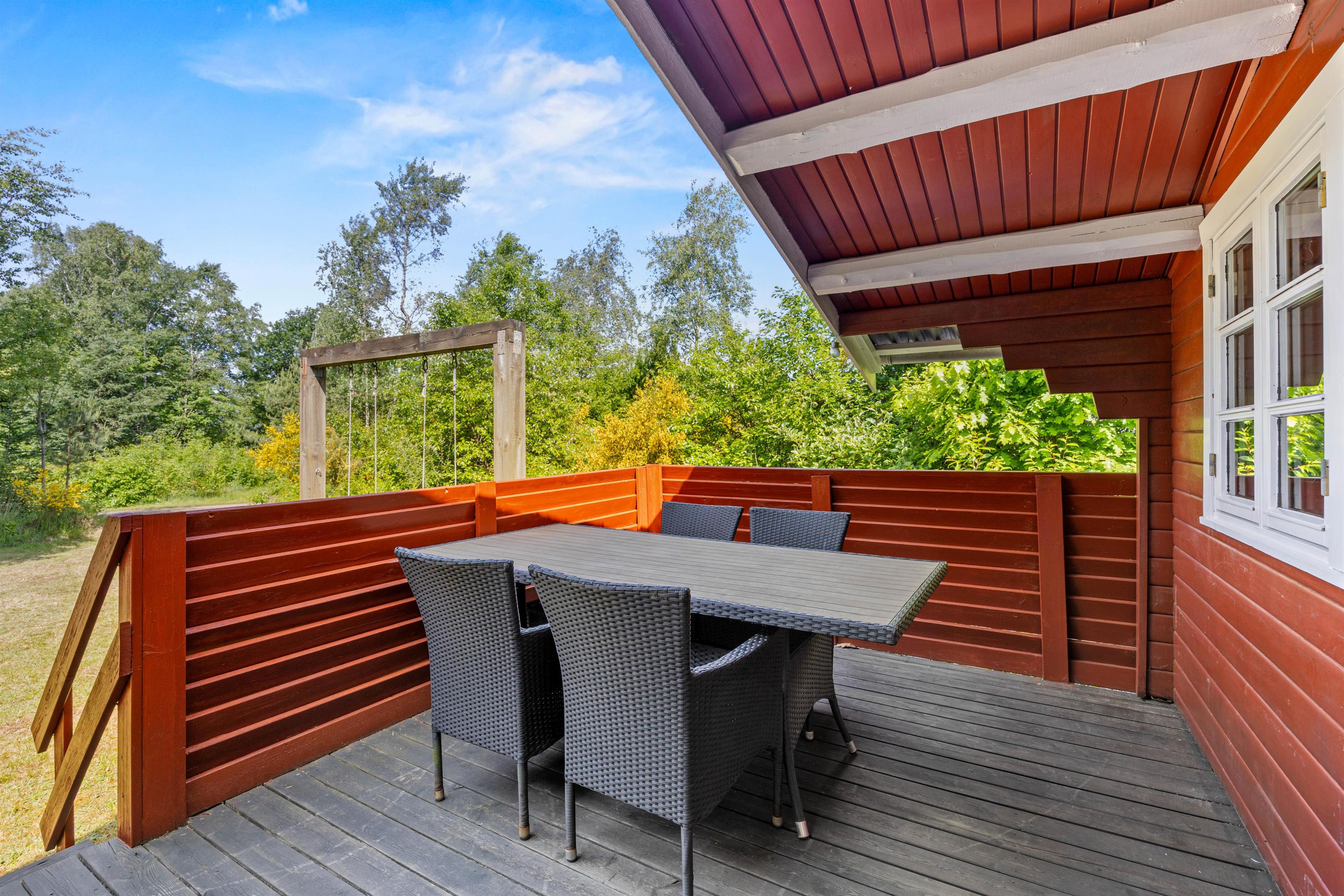 Dette sommerhus ligger i et fredeligt ferieområde omgivet af skov og det åbne landskab, perfekt til afslappende gå- og cykelture i det grønne. Her er der ro og plads til at koble helt fra, uanset om I nyder en stille morgen på terrassen eller udforsker de naturskønne stier omkring området.