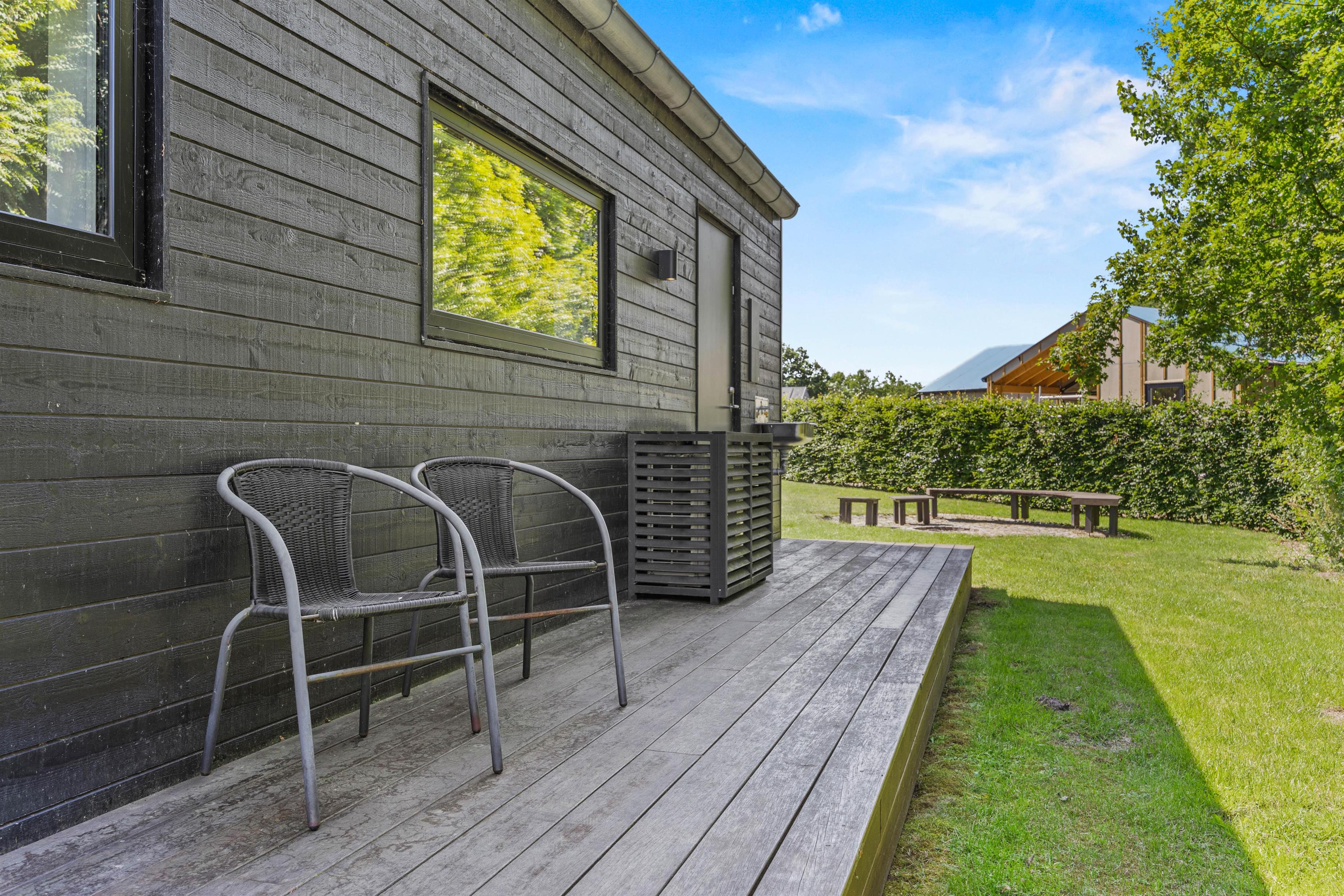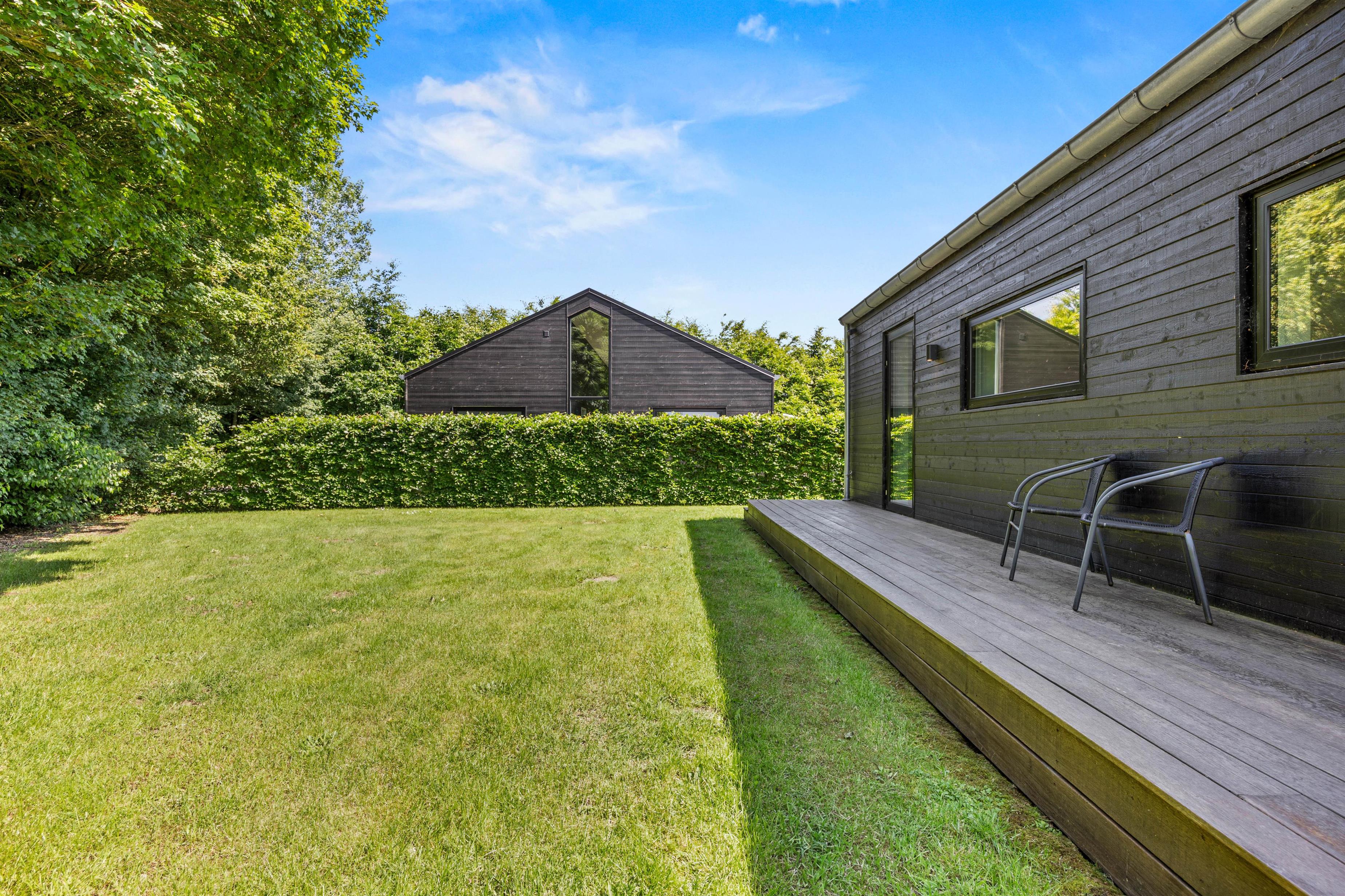 Efter dagens eventyr kan I trække jer tilbage til husets 2-personers standspa, hvor boblerne opløser hverdagens stress, og I kan nyde stilheden i eget tempo. Uderummet breder sig over en 800 m² plænegrund med både åben og afskærmet terrasse – ideel til solbadning på solvognene eller kaffe i skyggen under parasollen.