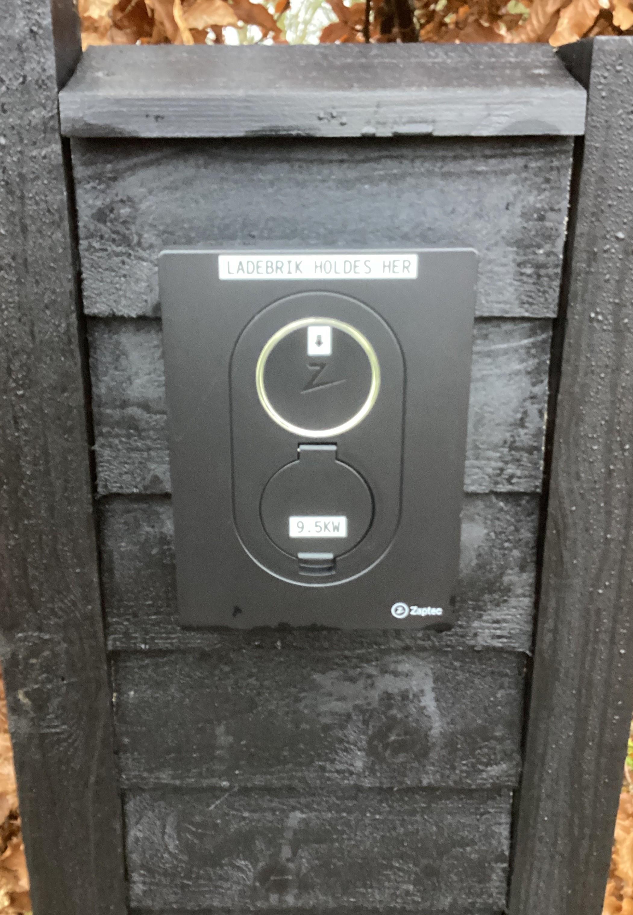Der er desuden en ladestation til elbiler ved huset. Ladestationen er en ZapTec uden fastmonteret kabel - det er derfor nødvendigt selv at medbringe ladekabel.