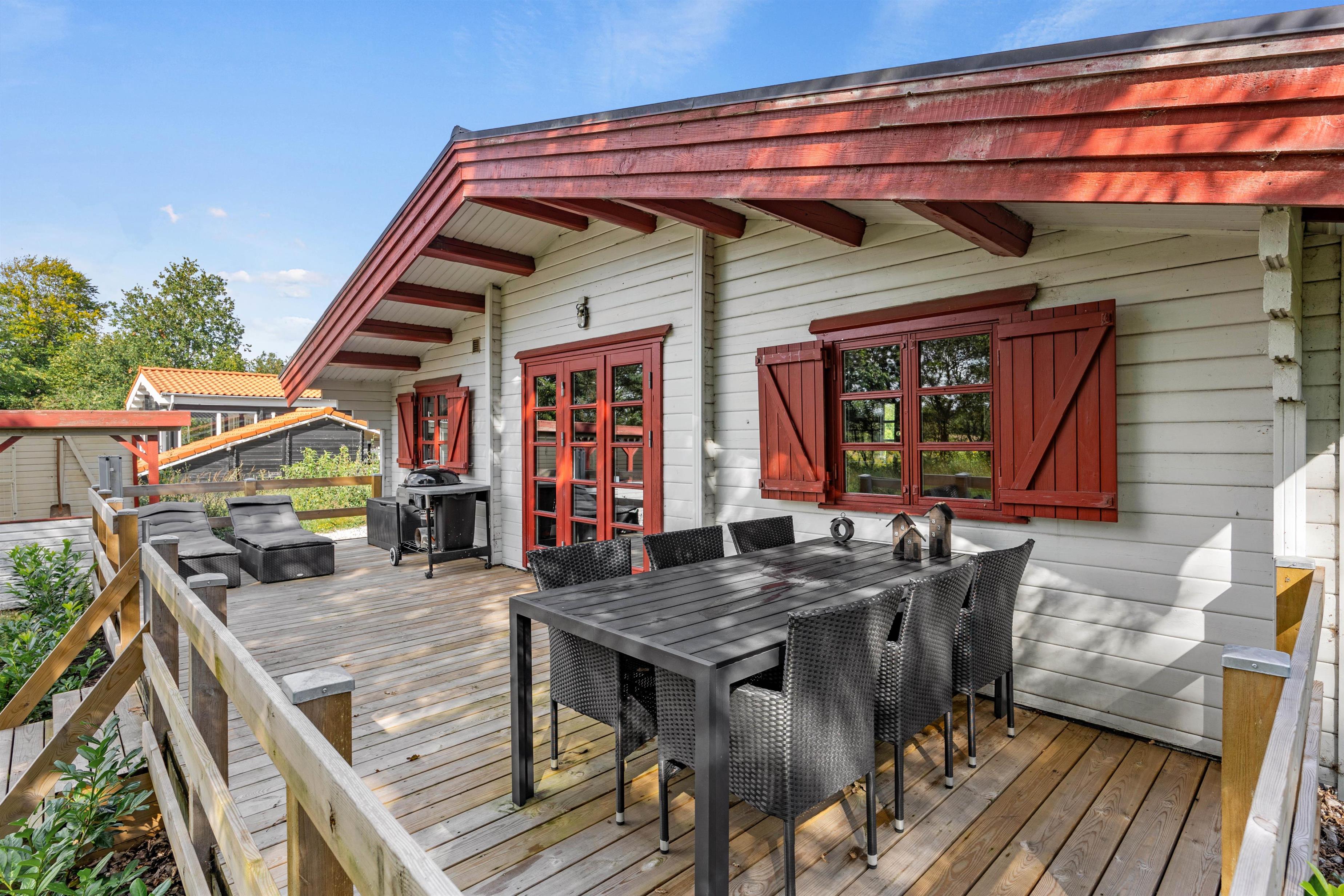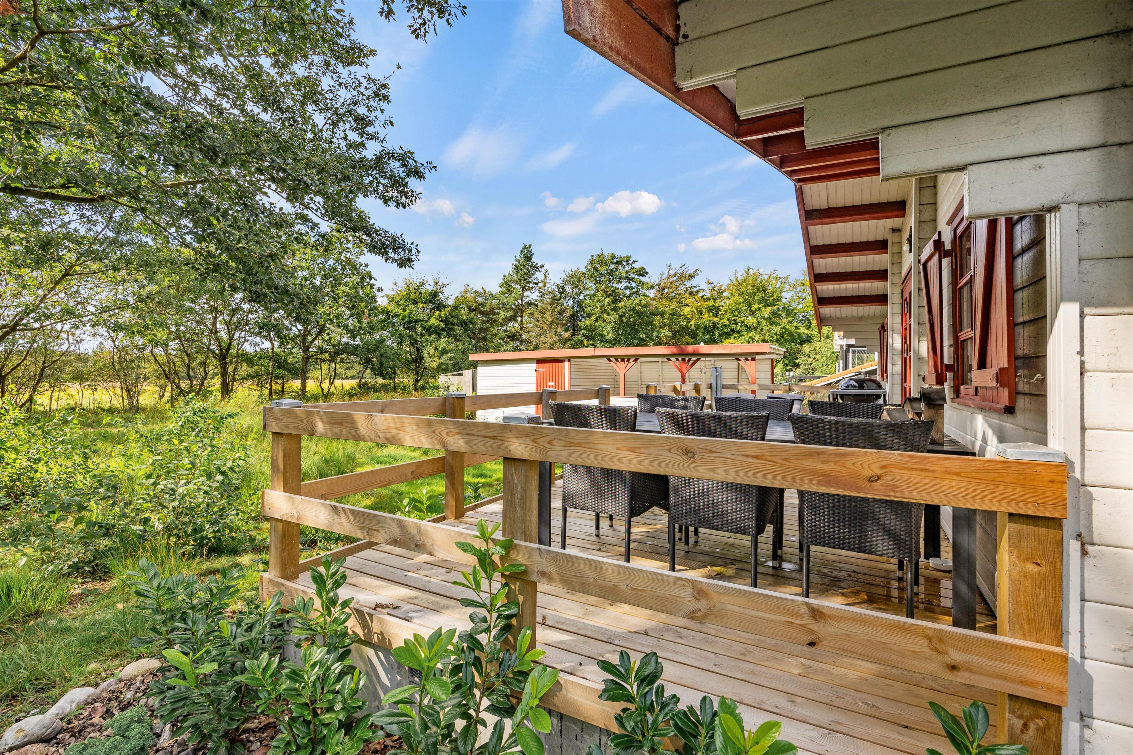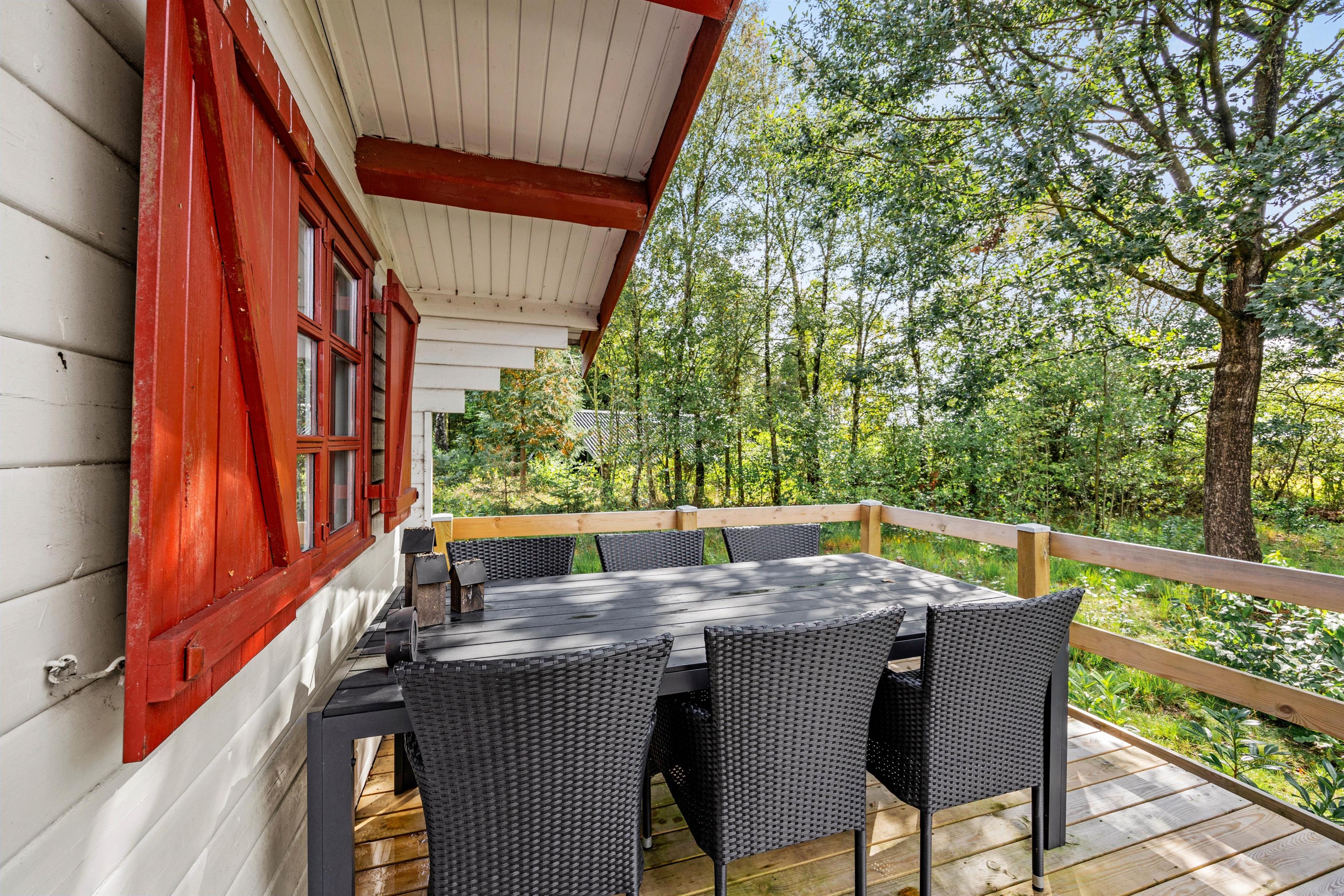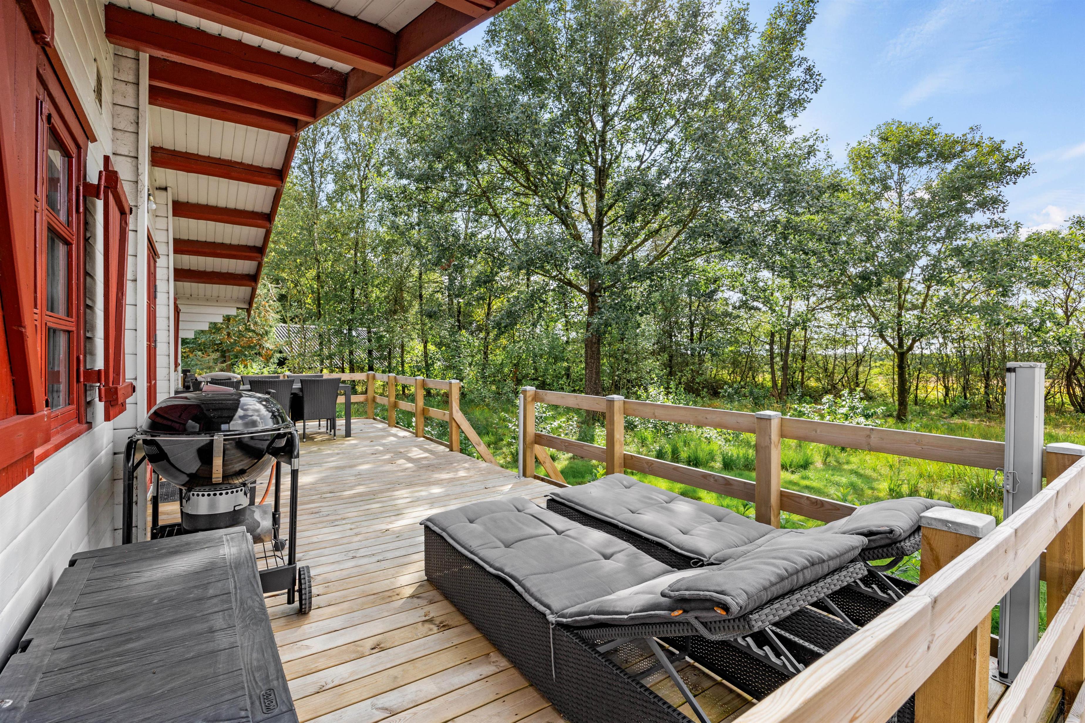 Den dejlige træterrasse fra 2022 inviterer til mange hyggelige timer i det frie. Her kan man nyde roen og den skønne natur hele dagen og afslutte en god feriedag med en grillaften. Til de små gæster findes der gynge og sandkasse på den børnevenlige grund.