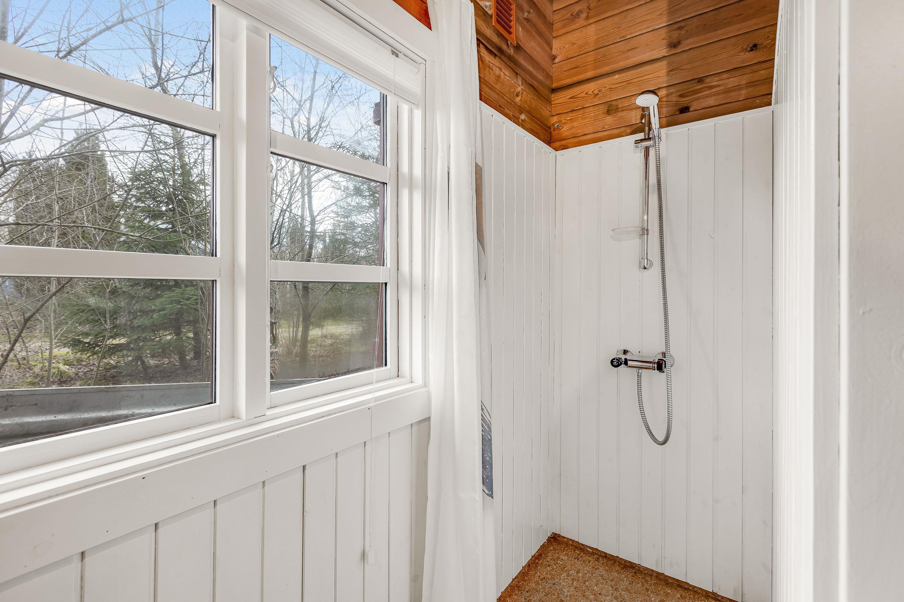 Træhuset er indrettet lyst og hyggeligt. I stuen findes der findes en brændeovn, som sørger for behagelig varme de kølige aftener. For energivenlig opvarmning findes der en varmepumpe, som holder varmeomkostninger ned.