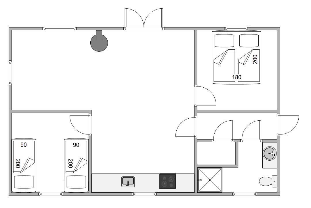 Der er to soveværelser, et med dobbeltseng og et med to enkeltsenge.