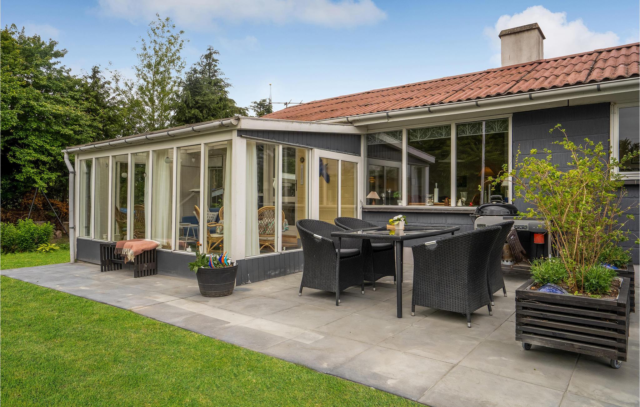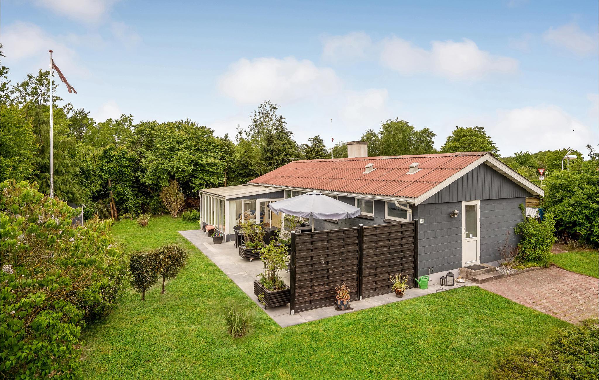 Hyggeligt feriehus tæt på As Vigs sandstrand med have, terrasse og moderne faciliteter for en afslappende ferie.