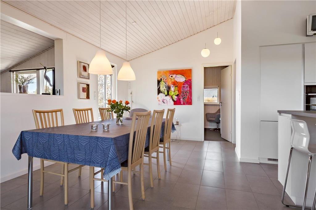I dette flotte sommerhus i 1. række ved As Vig Strand får du en ferieoplevelse ud over det sædvanlige. Allerede fra husets store køkken-alrum bliver du mødt af en panorama udsigt over havet, som fylder rummet med lys og ro. Her kan familien samles omkring måltiderne, mens blikket glider ud mod horisonten. Den smagfulde indretning kombinerer moderne komfort med klassisk sommerhusstemning, og i stuen kan du tænde op i brændeovnen på kølige dage og skabe den helt rette hygge. Når der skal skrues ekstra op for afslapningen, kan du nyde en stund i spaen – et perfekt sted at lade kroppen falde til ro efter en dag fyldt med oplevelser.