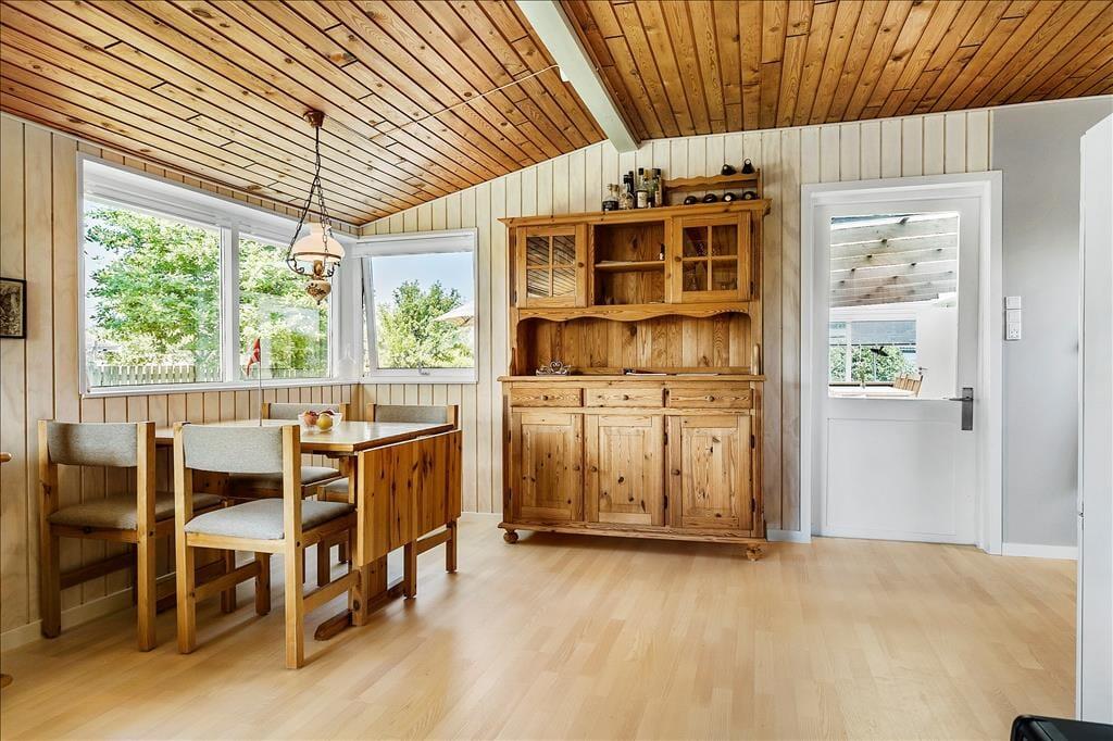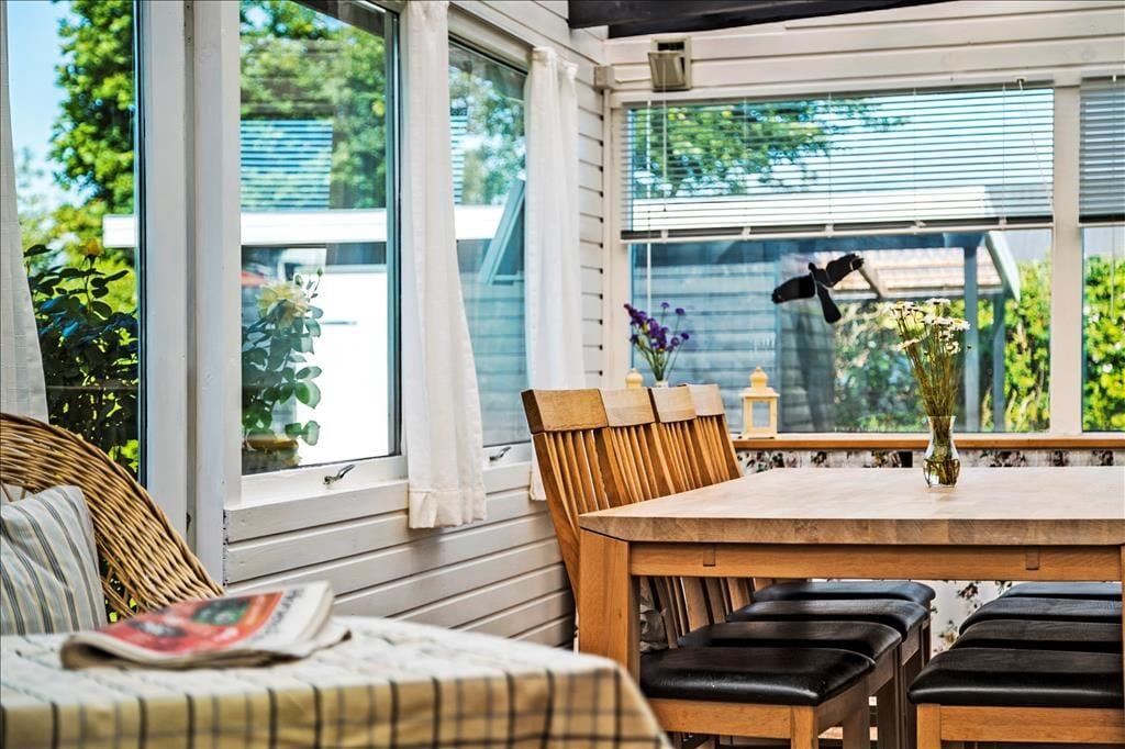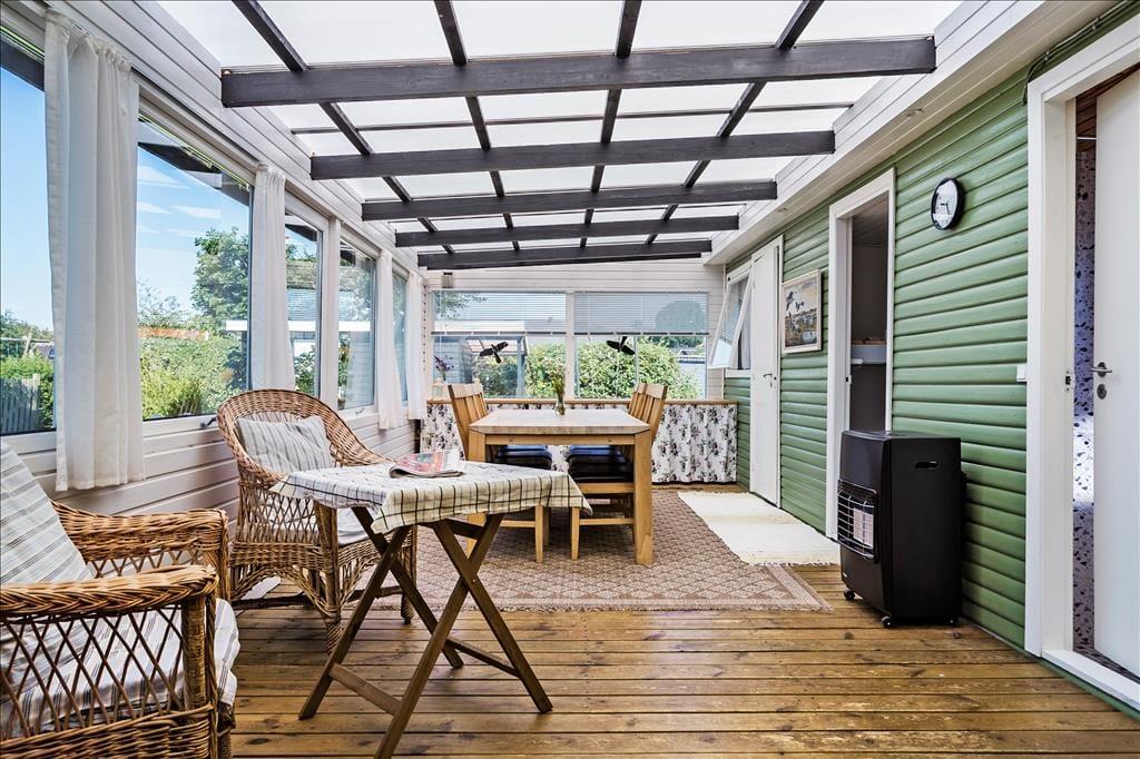 På kølige aftener sørger internetforbindelsen og tv'et for underholdning og variation. Den smukke havestue er også udstyret med et spisebord og vil helt sikkert hurtigt blive familiens samlingspunkt.