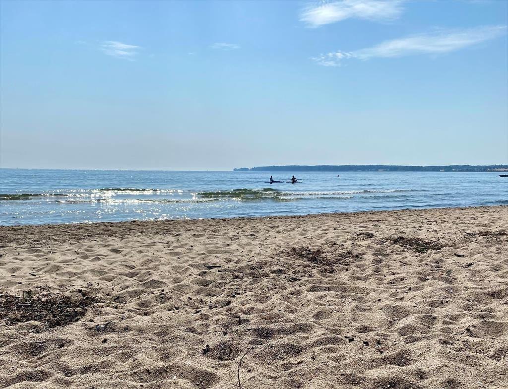 Her bor I i et roligt område, kun 300 meter fra en af Østjyllands bedste og mest børnevenlige badestrande. Den brede sandstrand indbyder til både leg, solbadning og lange gåture langs kysten.