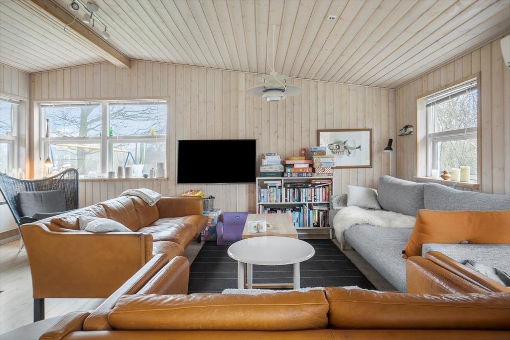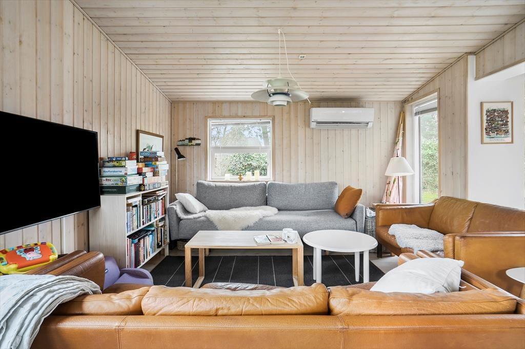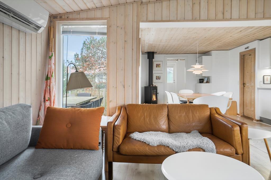 Når du træder indenfor i sommerhuset, kan du med det samme mærke, at her er der skruet op for hyggen og der er plads til, at I kan nyde ferien med hinanden. Vinduerne i huset giver et dejligt lysindfald, og haven kommer på den måde helt indenfor. De gennemgående lyse trævægge skaber en dejlig sommerhusatmosfære, så du kan godt glæde dig til ferien her!