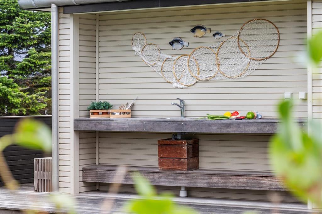 Huset har to skønne terrasser med gode havemøbler, hvor I kan nyde solen og den friske luft i komfortable omgivelser. Hvis I vil slappe af med en god bog, står der flere liggestole klar til jer. Når sulten melder sig, kan I tilberede feriens måltider på husets gasgrill og nyde dem under åben himmel.